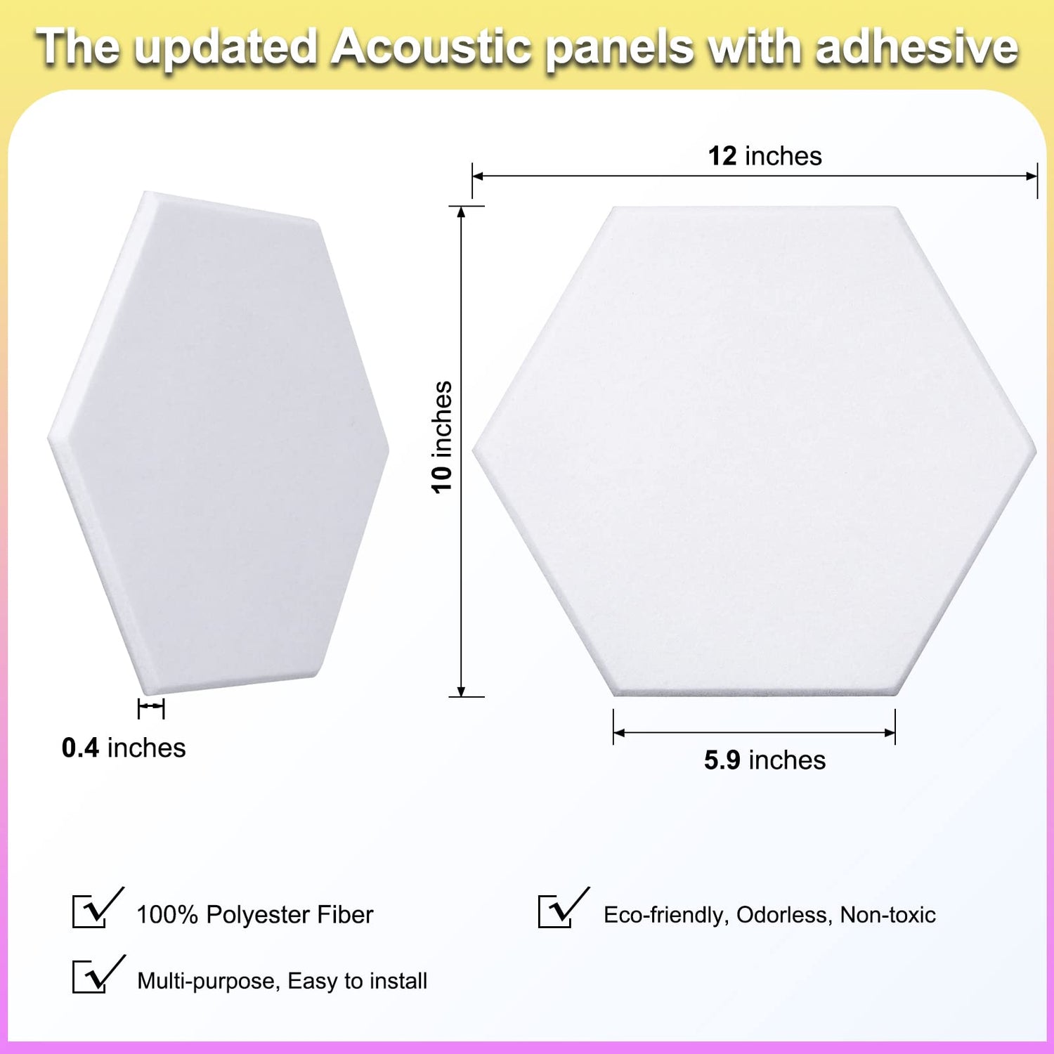 18 Pack Self-adhesive Acoustic Panels Soundproof Wall Panels 12"X10"X 0.4" Sound Absorbing Panel for Decoration Sound Deadening Panels Acoustic Treatment Panel For Home Office(White Hexagonal Design)