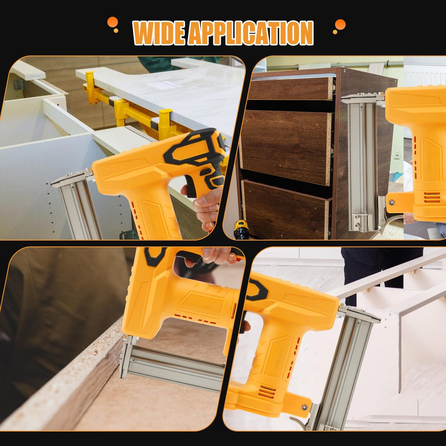 - Safety Design: This electric nail gun is equipped with a safety nose, you can only shoot nails or staples when the safety nose pin is fully pressed against the work surface, preventing accidental nail shooting