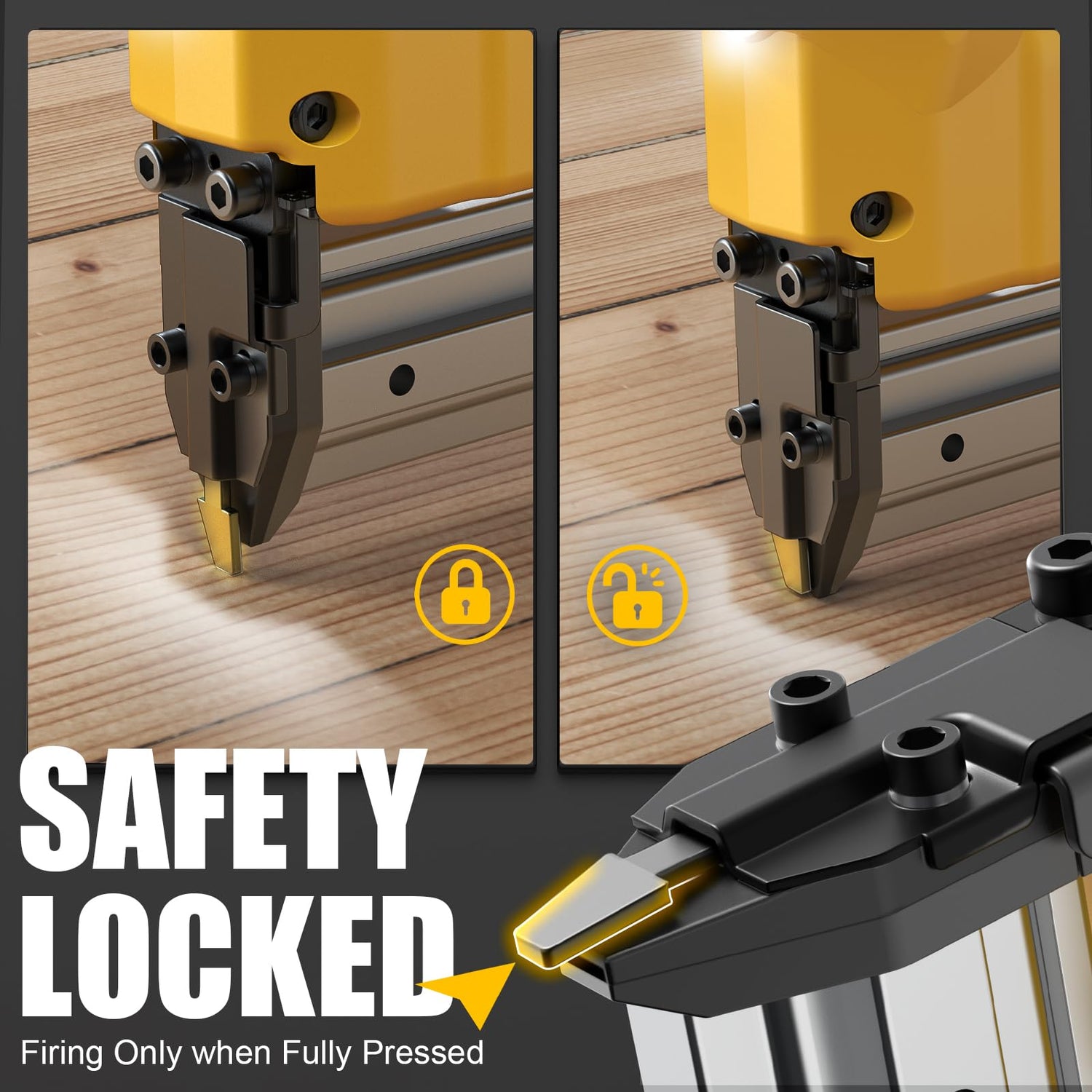 - Safety Design: This nail gun electric is equipped with a safety nose that only fires when it is completely squeezed. You don't have to worry about accidentally shooting nails. In addition, this nail gun is equipped with an LED light so that you can continue to work in poor lighting conditions.