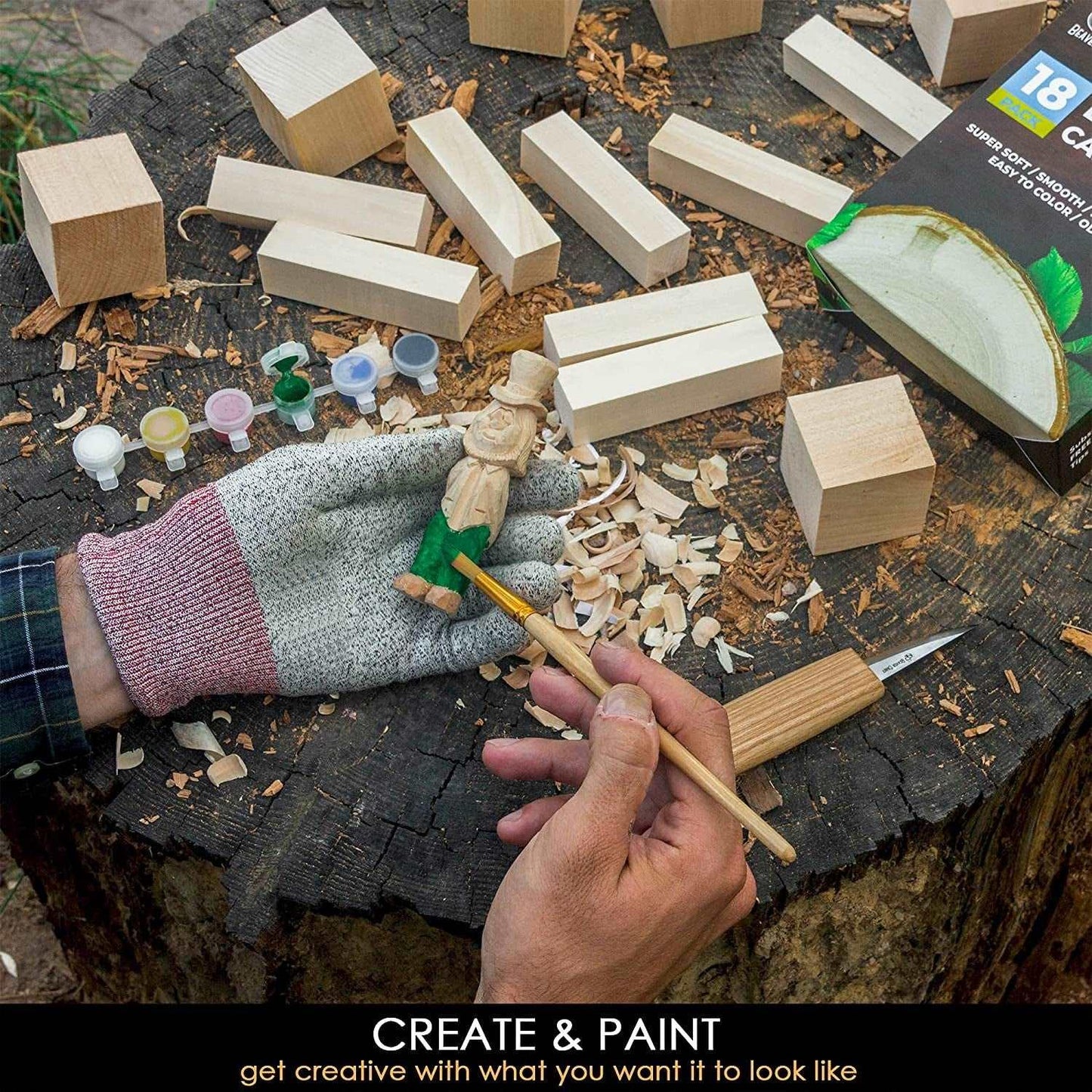 - Carving Wood Blocks 18 piece set: this whittling kit will be a good base for your further projects - it includes 18 different basswood blocks and cubes that you can use for some amazing ideas.
