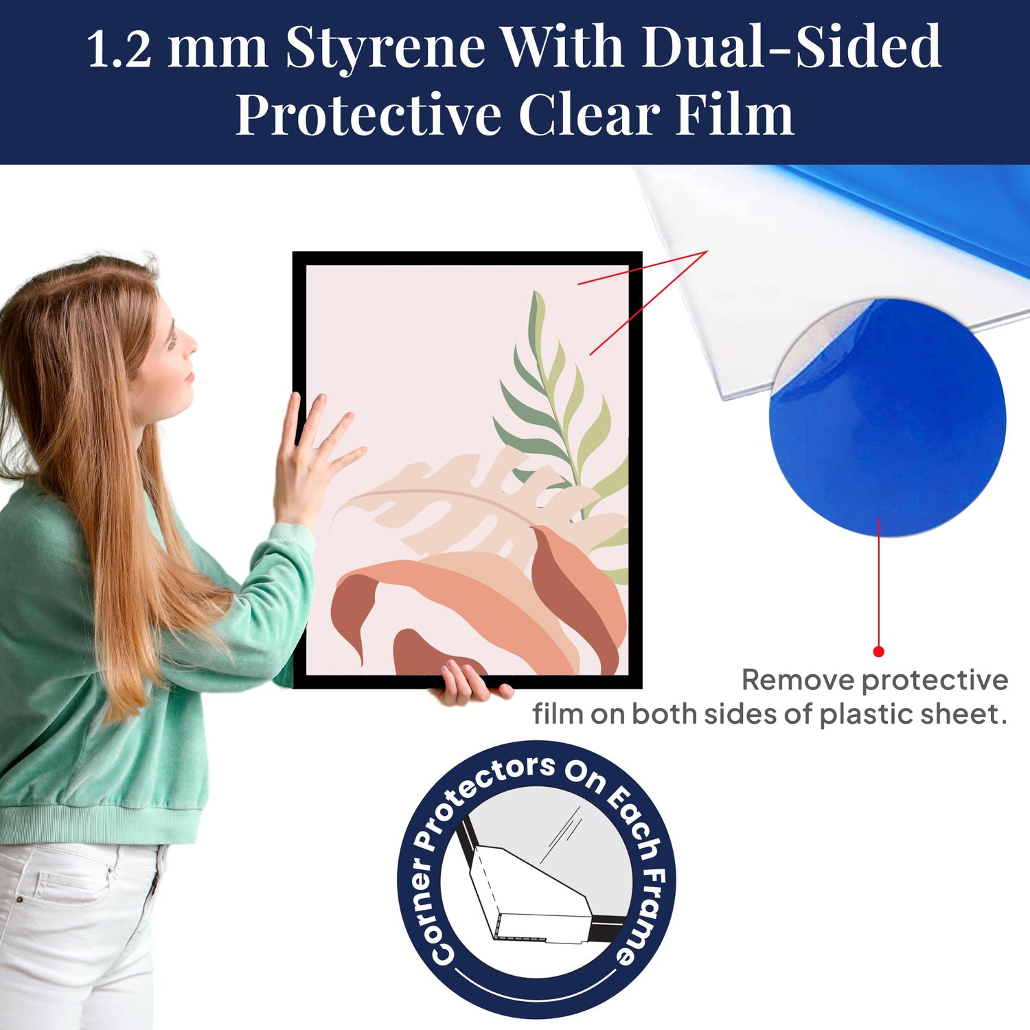 - Sturdy and Protective: Crafted with high-quality plexiglass, this frame is both durable and protective. It provides a safer and lightweight alternative to traditional glass. Simply remove the clear film from both sides to reveal a crystal-clear view of your artwork.