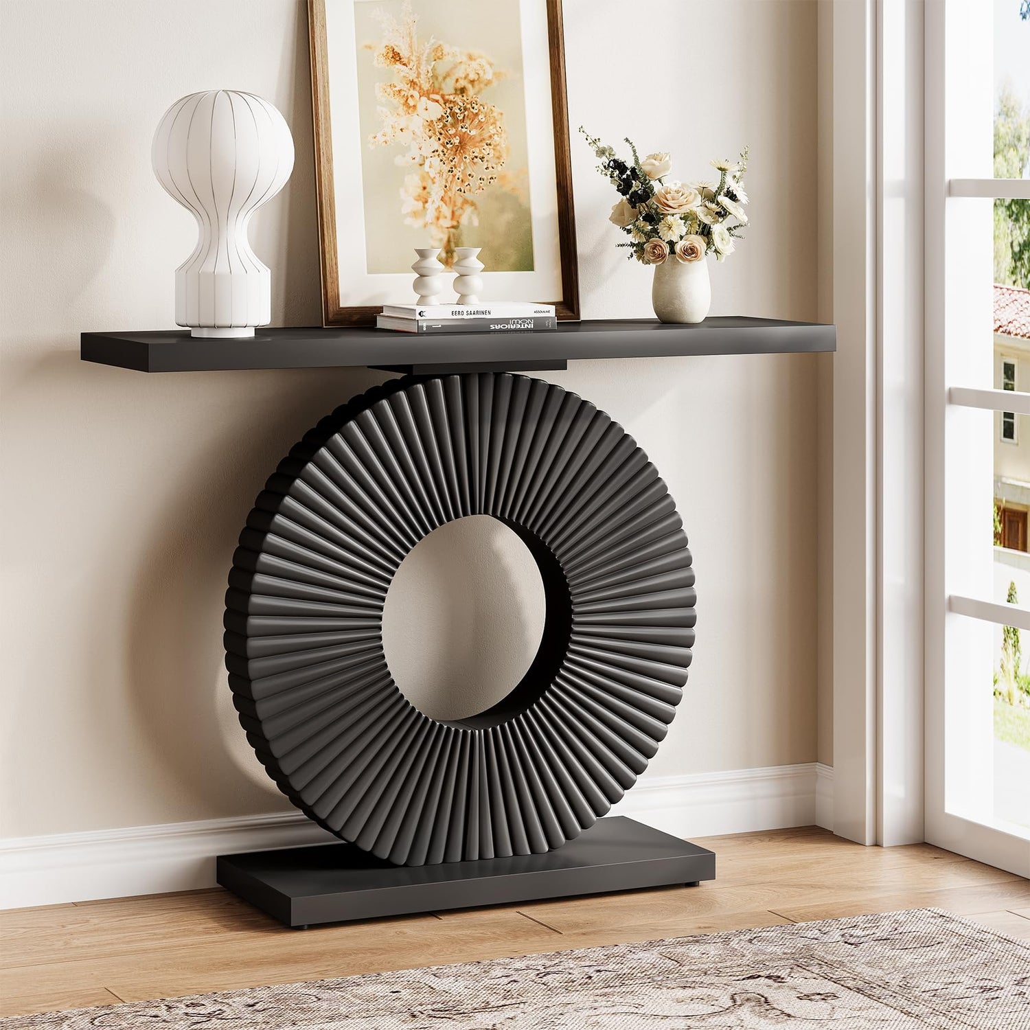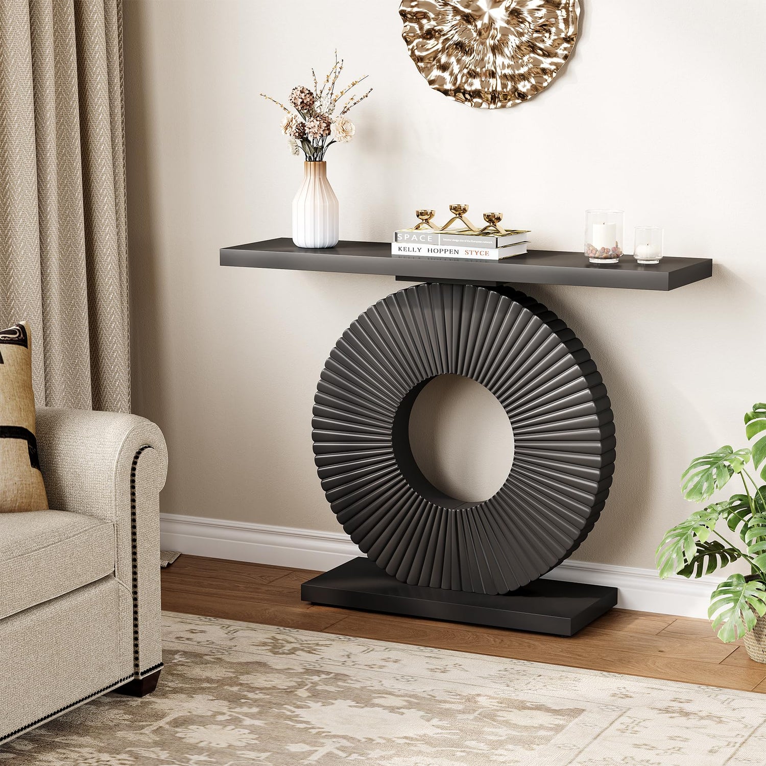 1Easylife Modern Console Table, Wooden Hallway Entry Table, Rectangular Sofa Table for Living Room, Bed Room, Home Office, Black