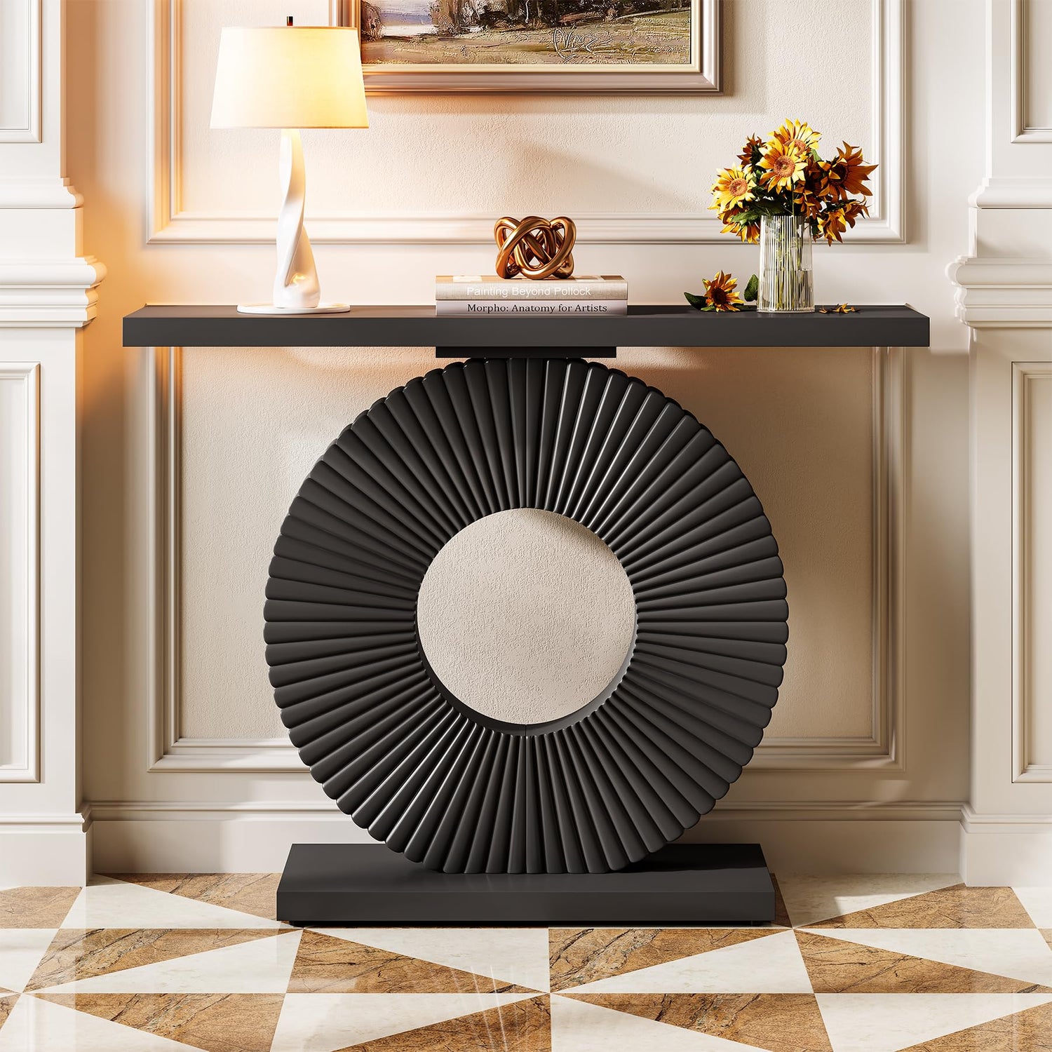 - Stylish Rounded Design: The Console table's circular design not only ensures greater sturdiness and stability, but it also lends the table a fashionable and beautiful aesthetic thanks to its decorative rings