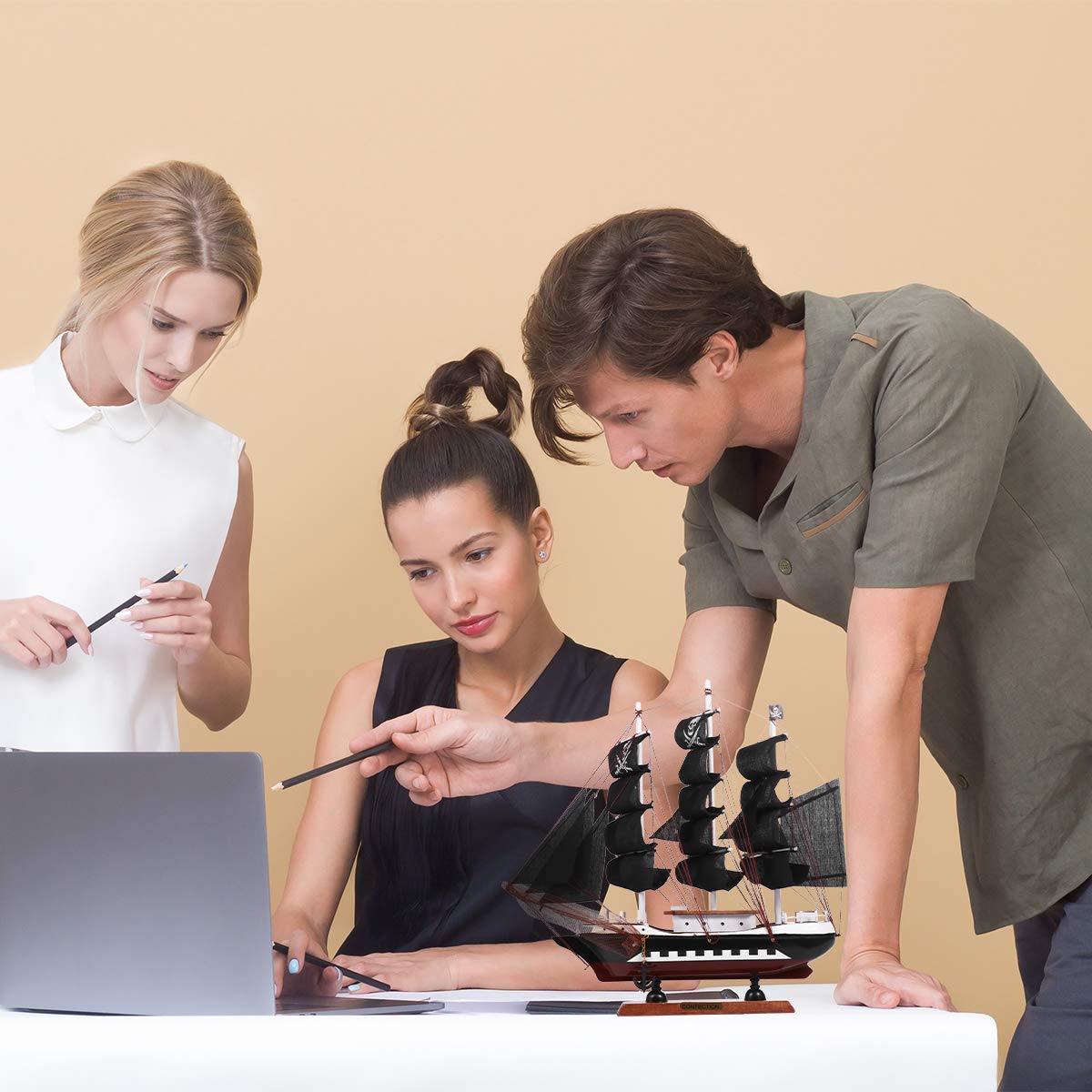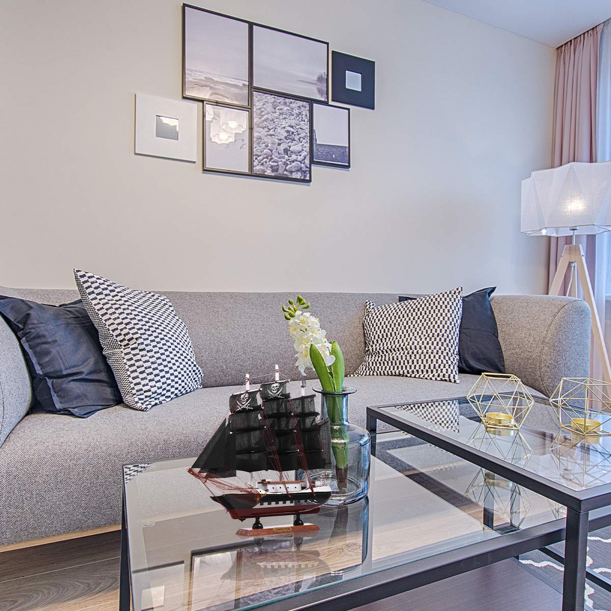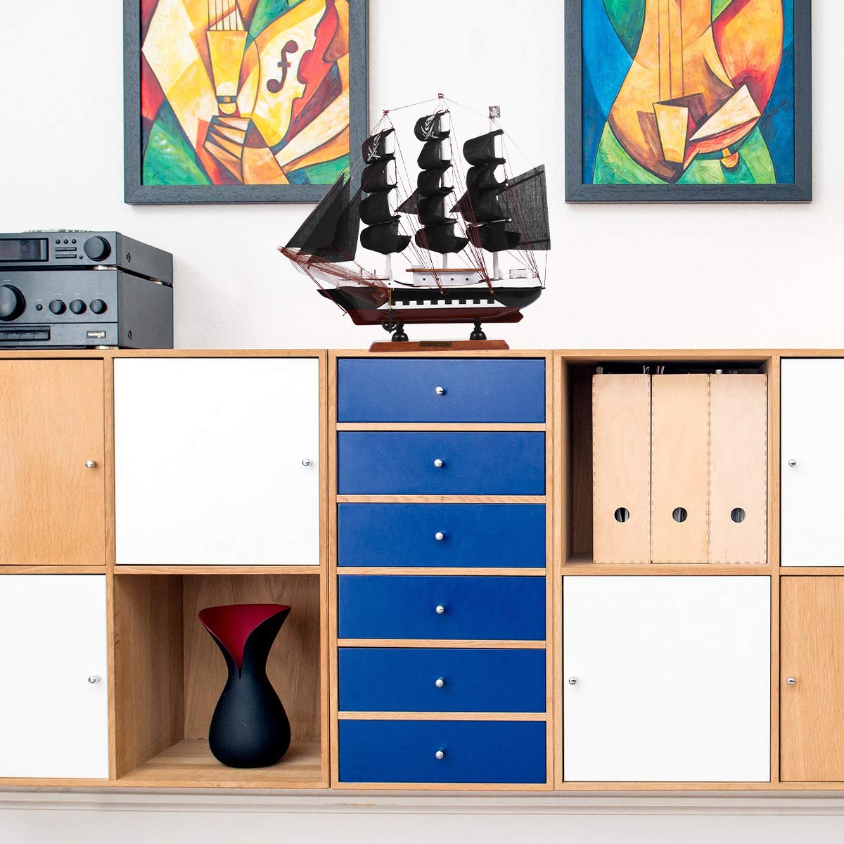 1Pc Wooden Pirate Model Sailboat Vessel Model Sailing Boat Home Decor