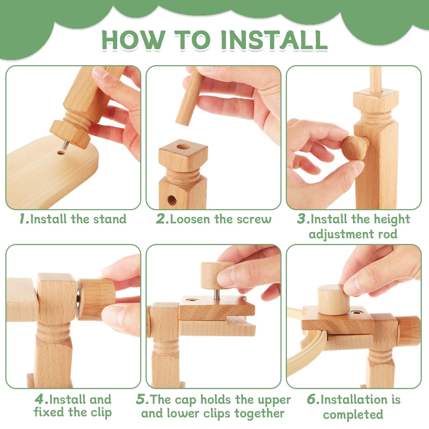 - HIGH QUALITY: Embroidery hoop stand is made of wooden, sturdy and durable, comfortable and smooth touch, exquisite workmanship, widened and enlarged base design, and more firm and stable use