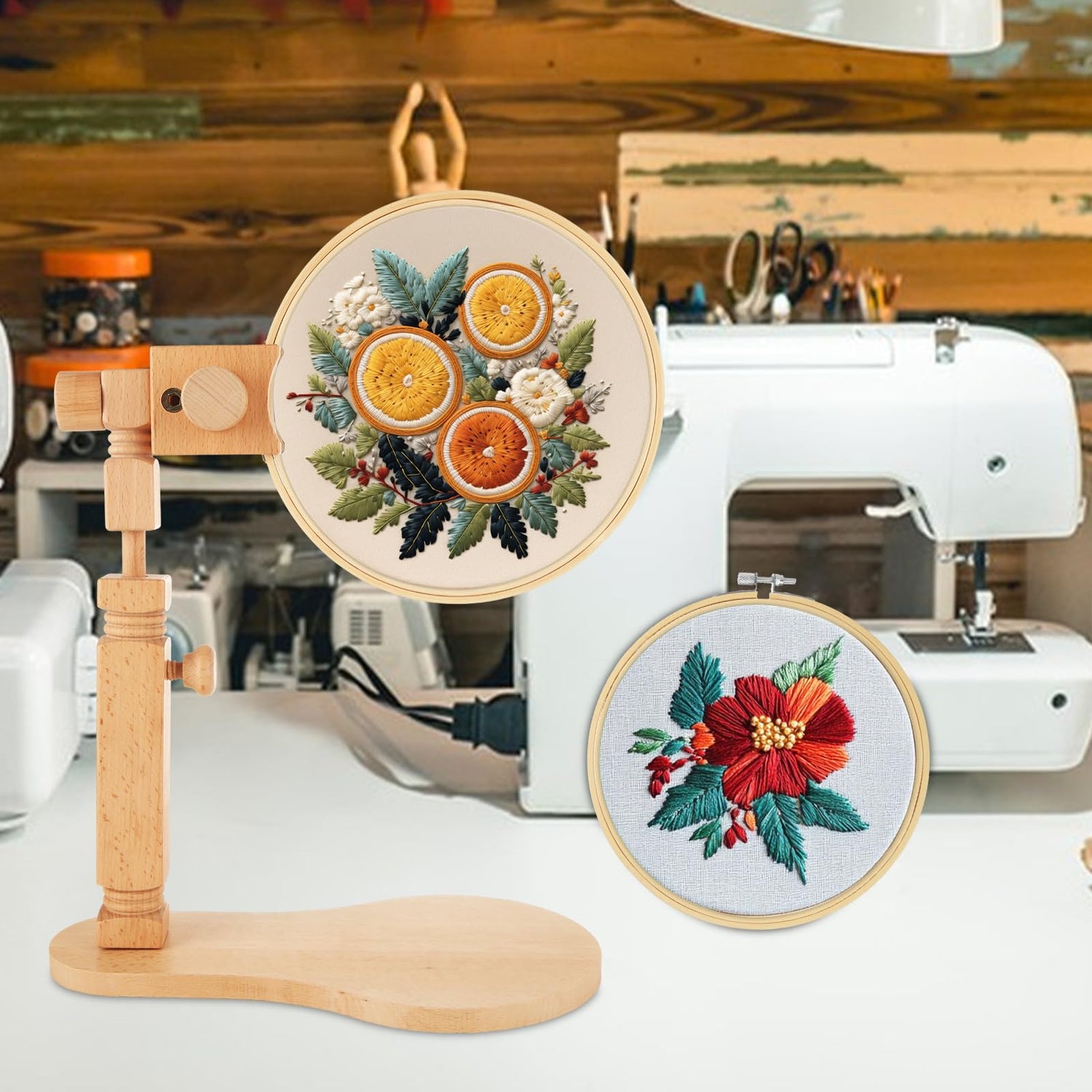 Details: Embroidery Hoop Stand Adjustable - Rotated Embroidery Frame Stand with 3"4"5"6''7"8'' Embroidery Hoops, Cross Stitch Stand, Wood Embroidery Hoop Holder, Embroidery Stands for Hand Work