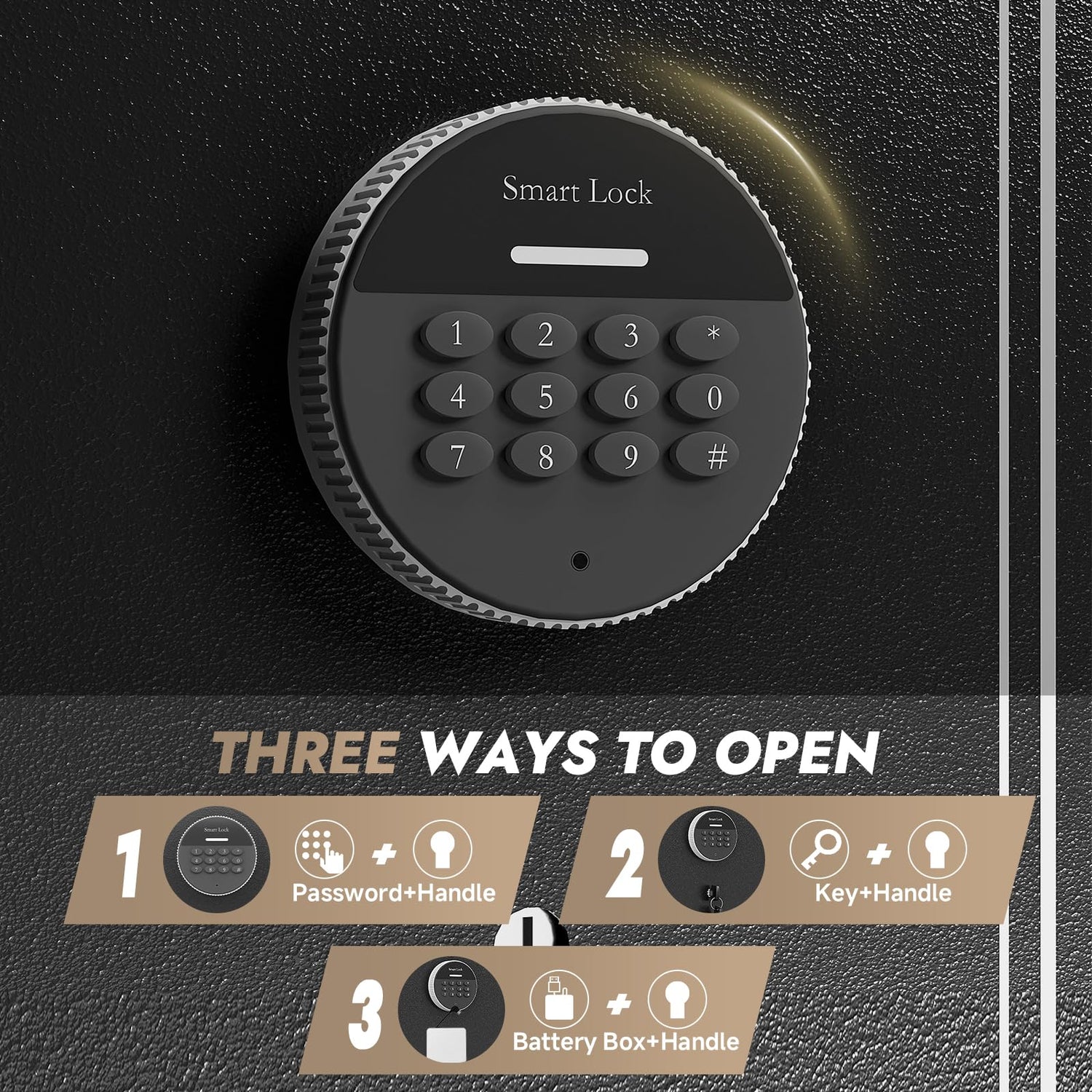 - 【Multiple Locking Gun Safe for Rifles and Pistols】:Equipped with advanced password lock system and emergency key dual protection, ensuring the safe and reliable storage of your firearms. (Tips:If your battery is low, you can use the emergency battery box to open the gun cabinet)