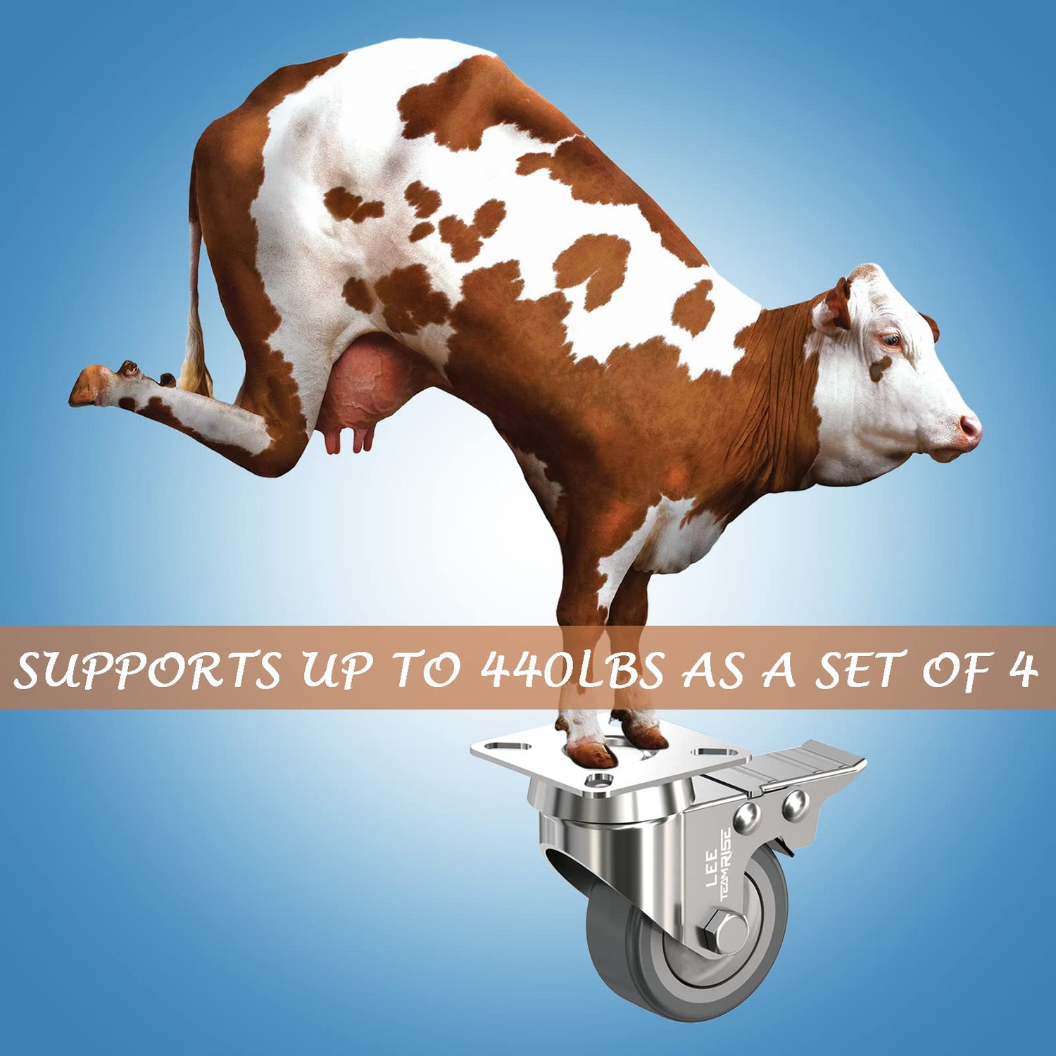 2" Caster Wheels Set of 4 Heavy Duty Plate Casters with Brake 2 inch Dual Locking Castors and No Noise TPR Rubber Wheel No Floor Marks Silent Castor Swivel for Furniture 4 Pack up 440Lbs, Free Screws