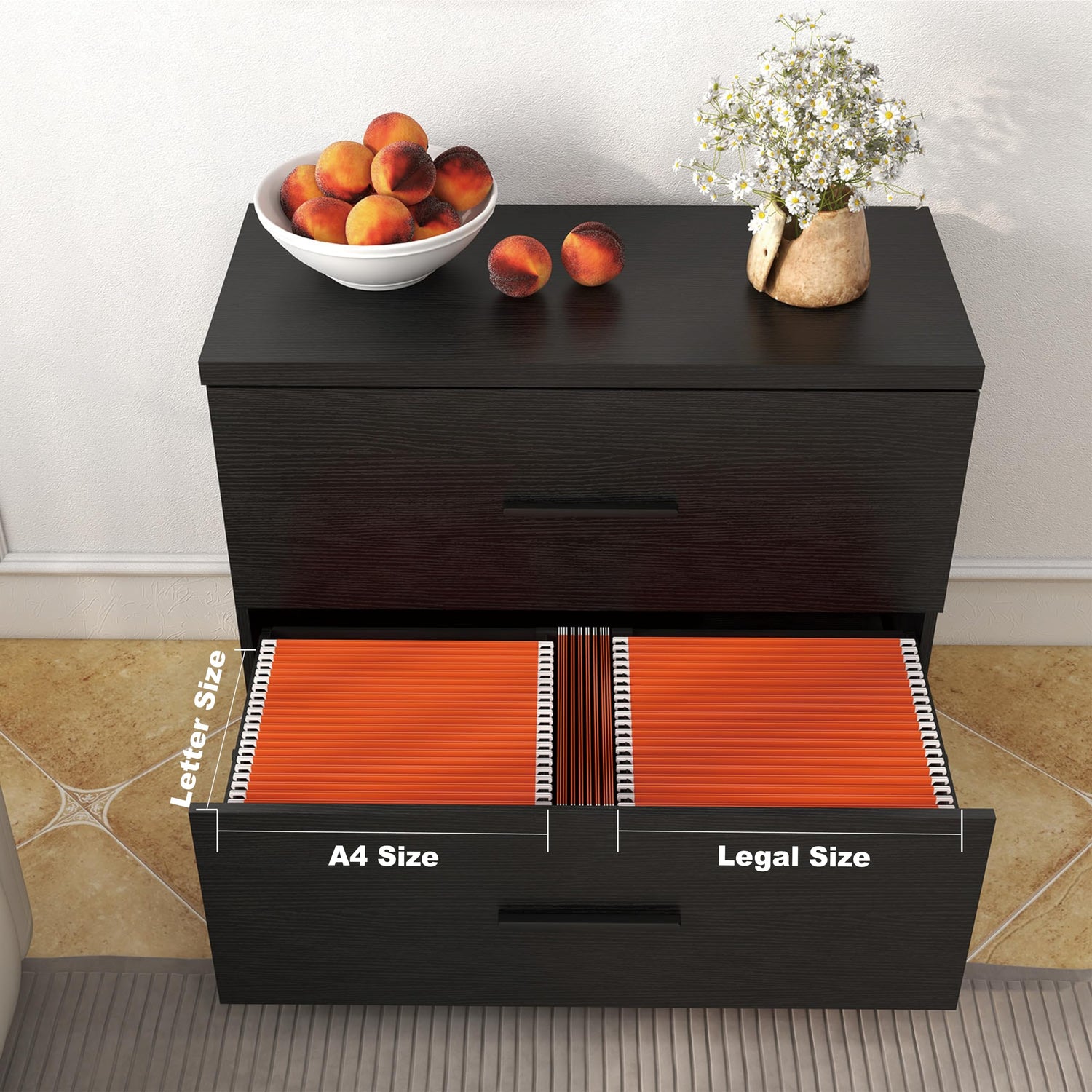 - Effortless File Management: The cabinet's drawers are specifically designed to hold Letter, A4, and Legal size hanging folders. With high-quality, full-extension glides, these drawers open smoothly, allowing easy access to your files. Retrieving documents from the back of the drawer is hassle-free, promoting efficient organization.