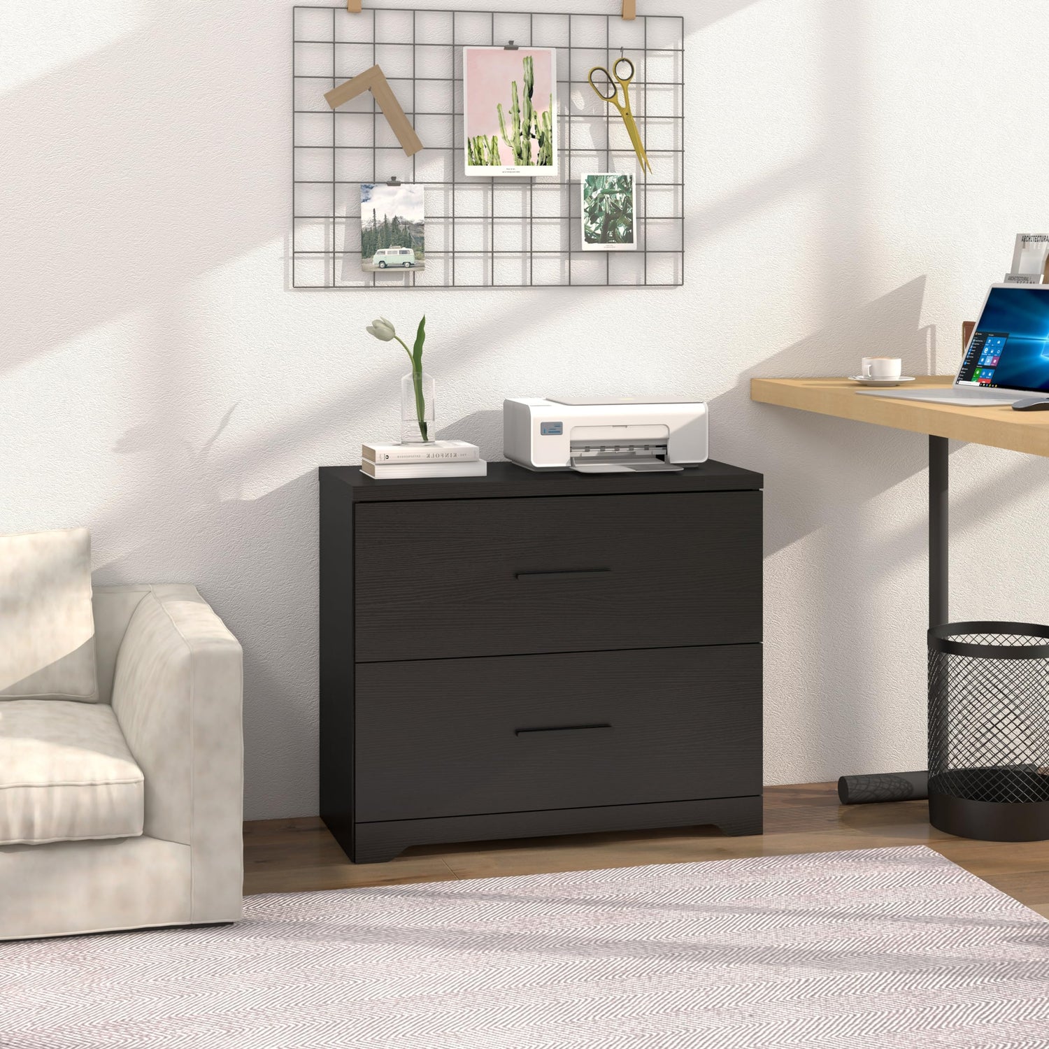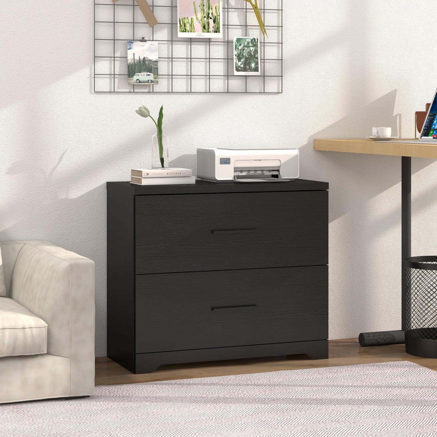 - Multi-Purpose Functionality: Designed to cater to your versatile needs, this cabinet serves as a printer stand as well. Its dimensions are tailored to accommodate printers and scanners, making it a perfect fit for your office setup. The cabinet's sturdy construction can easily support the weight of printers and scanners, ensuring stability and reliability.