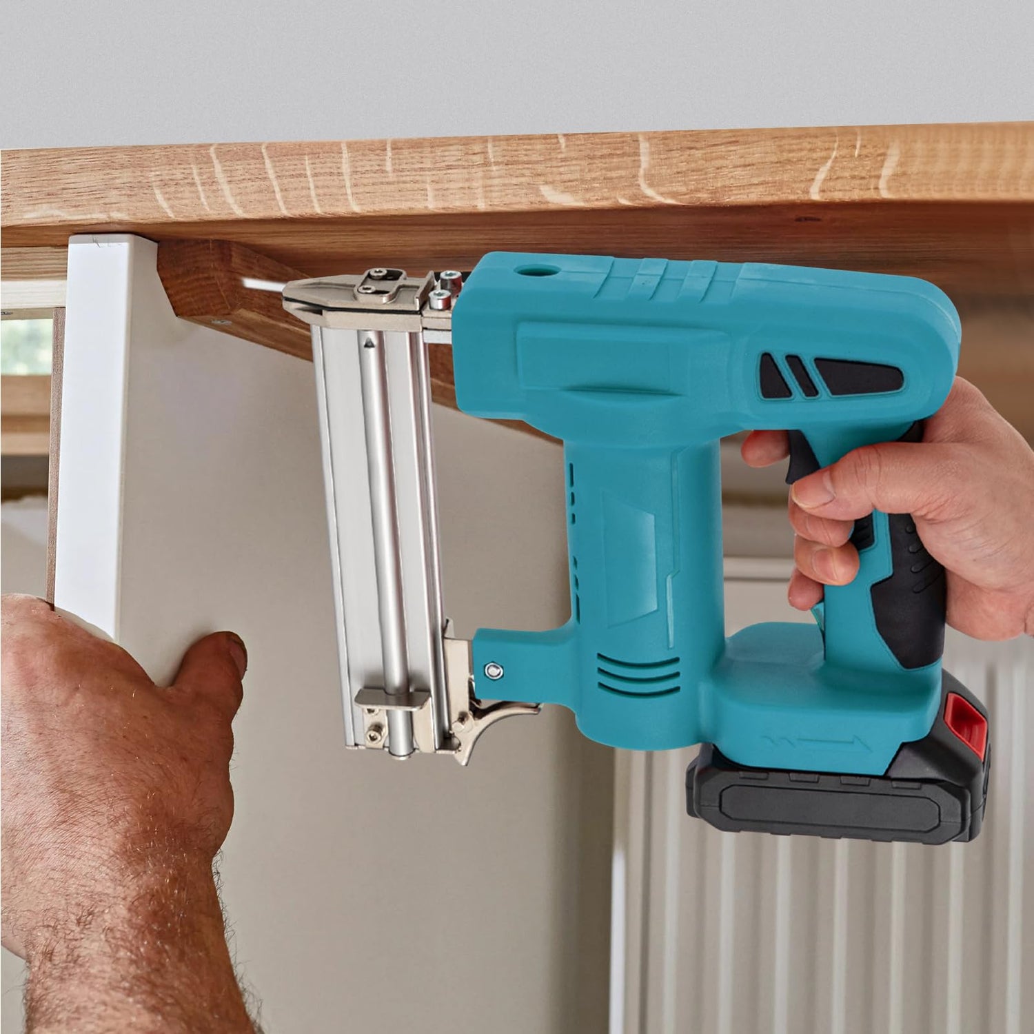 A powerful tool is indispensable for wood-nailing work. To help you do a better job of firing nails, our nail gun is made of high-quality materials and adopts a spring structure working principle and a powerful motor to ensure high working efficiency. The comfortable handle, sensitive trigger, and large-capacity battery make it easier for you to finish your woodworking work.