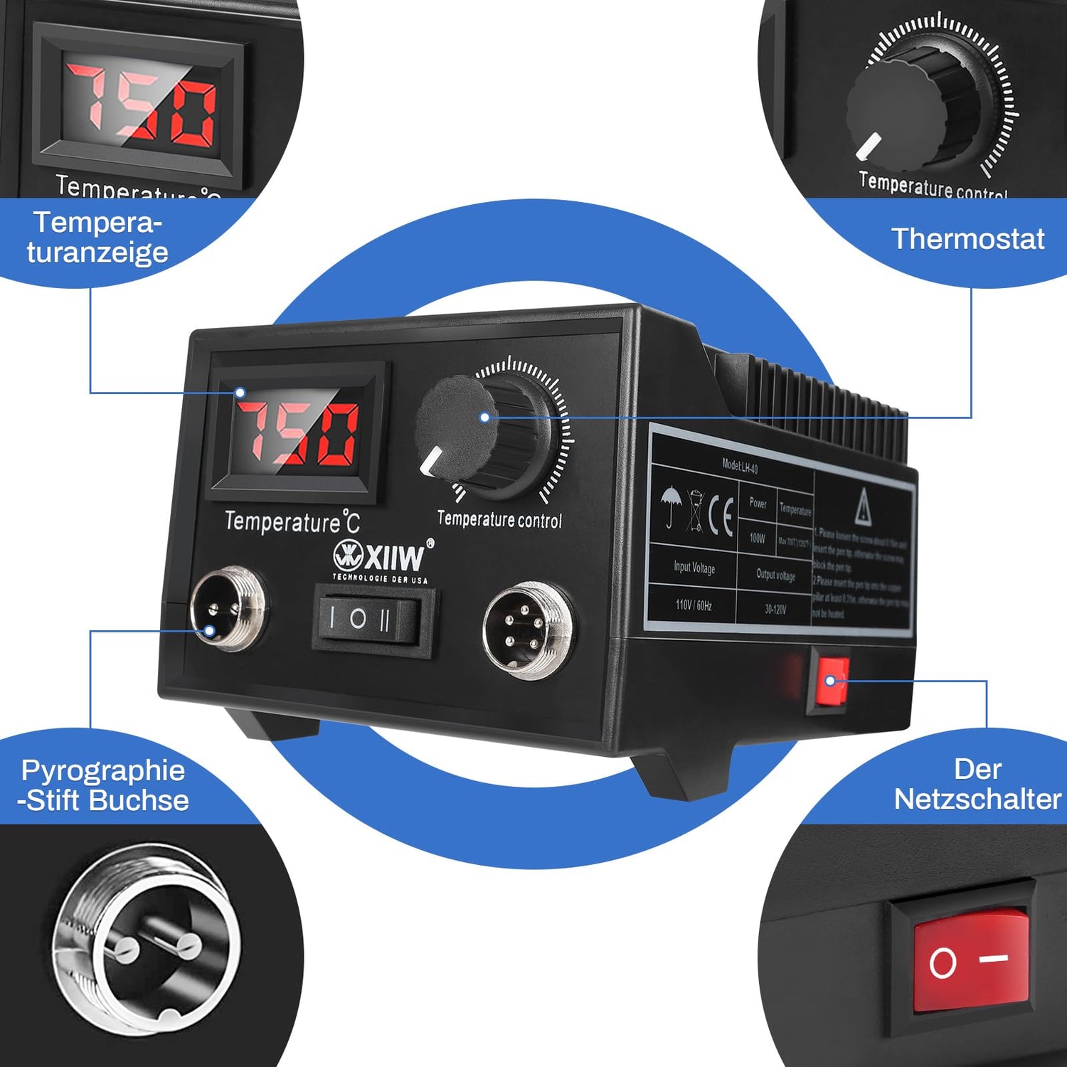 - 【Wide Temperature Range】The wood burning tool kit is equipped with digital temperature adjustment, which allows you to adjust the temperature precisely according to your preferences, ranging from 0°C to 750°C. You can easily read the accurate temperature through the digital display screen.