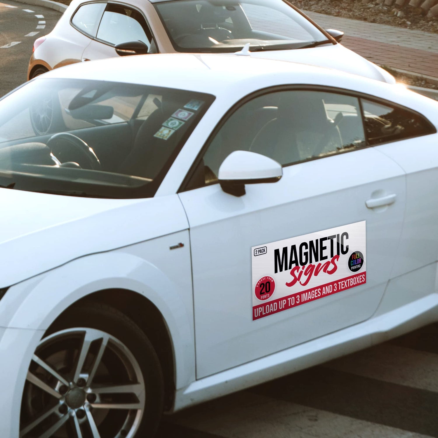 - STRONG AND DURABLE - With our customizable car sign, you will be able to take advantage of a new way to advertise your brand or business. These business magnets for cars, trucks and trailers are built to last. Our custom vinyl banner is weatherproof and will surely last long through all kinds of weather conditions.