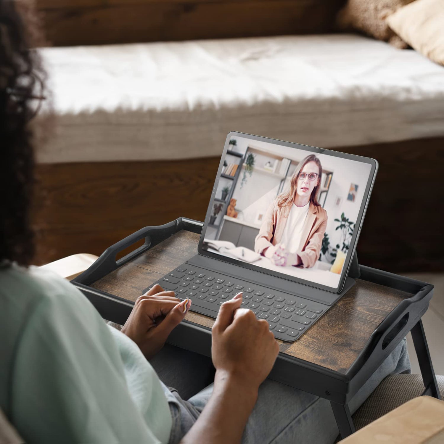 2 Pack Bed Tray Table Breakfast Trays Serving Tray Bamboo Bed Laptap Floding Legs with Handles and Phone Holders