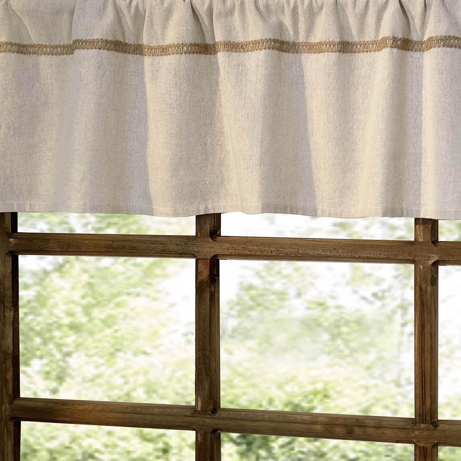 - PREMIUM QUAILITY : Our valance curtain is made of cotton linen blended fabric, emboss with burlap lace decoration under the rod pocket. Exquisite workmanship and neatly sewn make it durable.