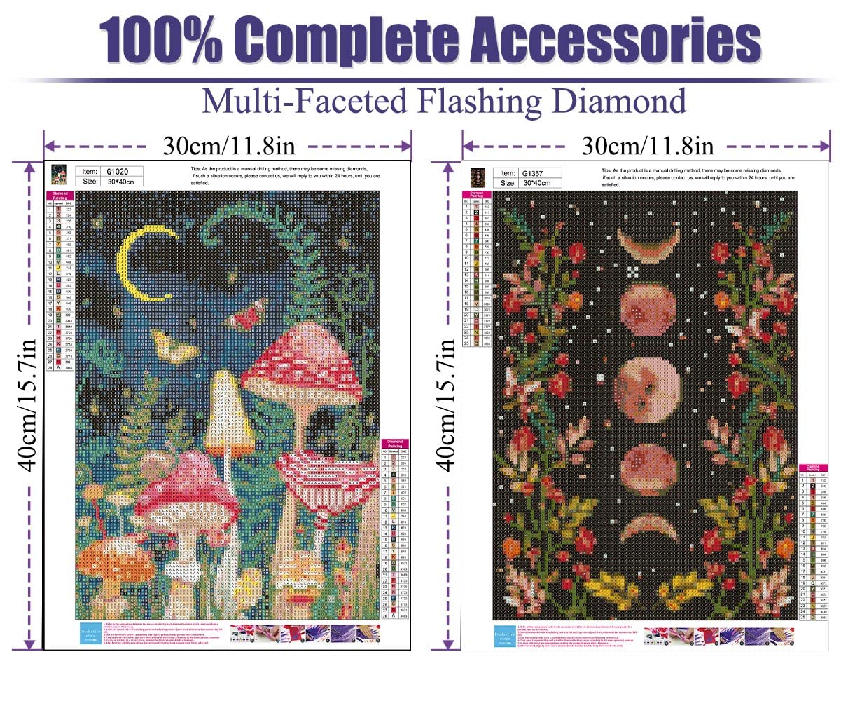 2 Pack Diamond Painting Kits for Adults,5D DIY Mushroom Forest Full Drill Round Art Gems with Moon Diamond Art Perfect for Home Wall Decor Diamond Dotz Inch12x16
