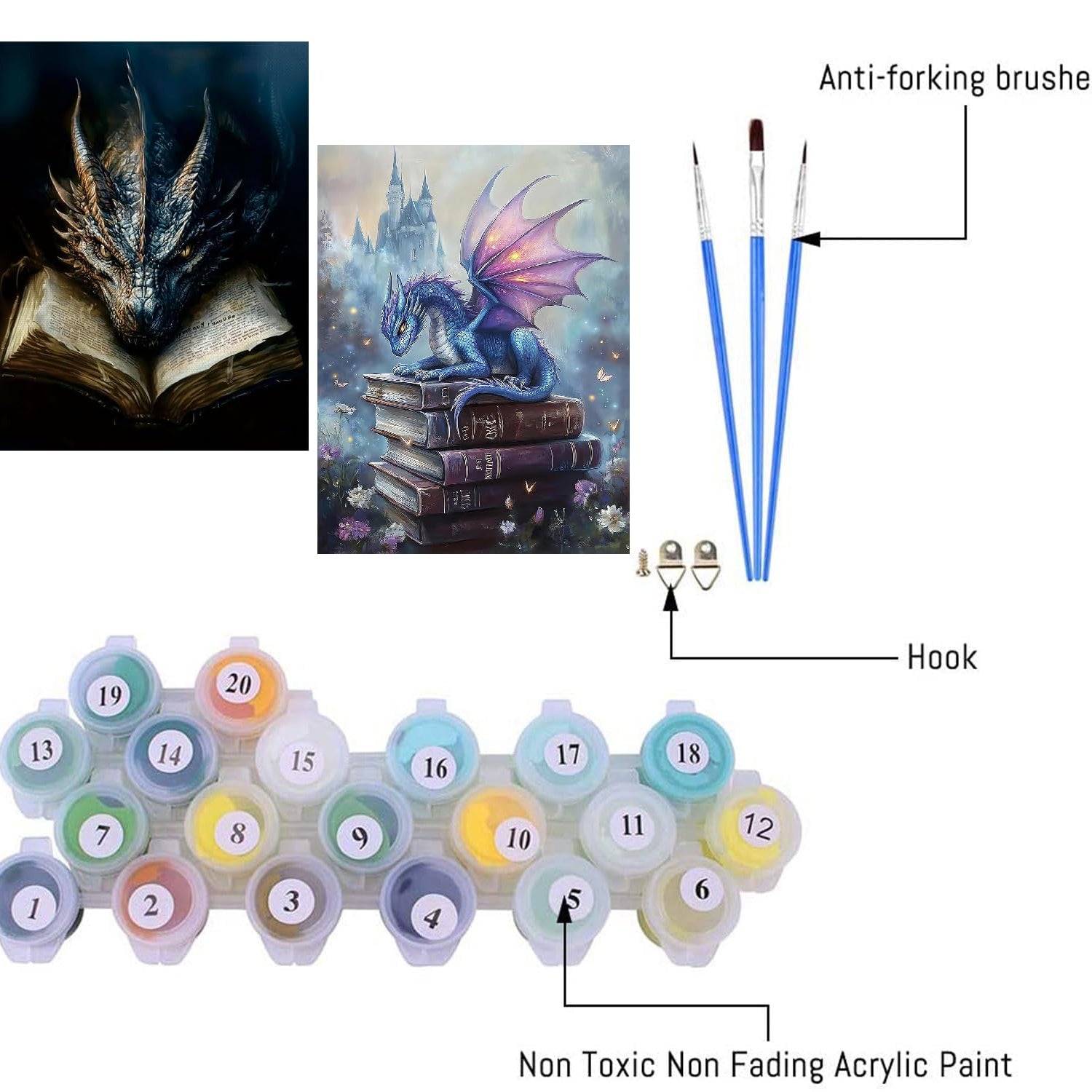 - 【Paint By Numbers Kit For Adults】Acrylic DIY paint by number for adults has a complete tool kit, including 4*nylon brushes, 2*hook nails, 2*matched, Acrylic paint and 2*HD Canvas 2* Framed. Open the package and you can start painting immediatelyat. we will provide you with everything you need to paint.