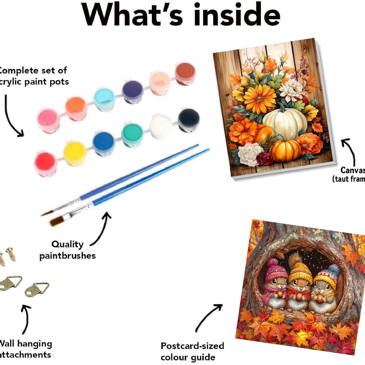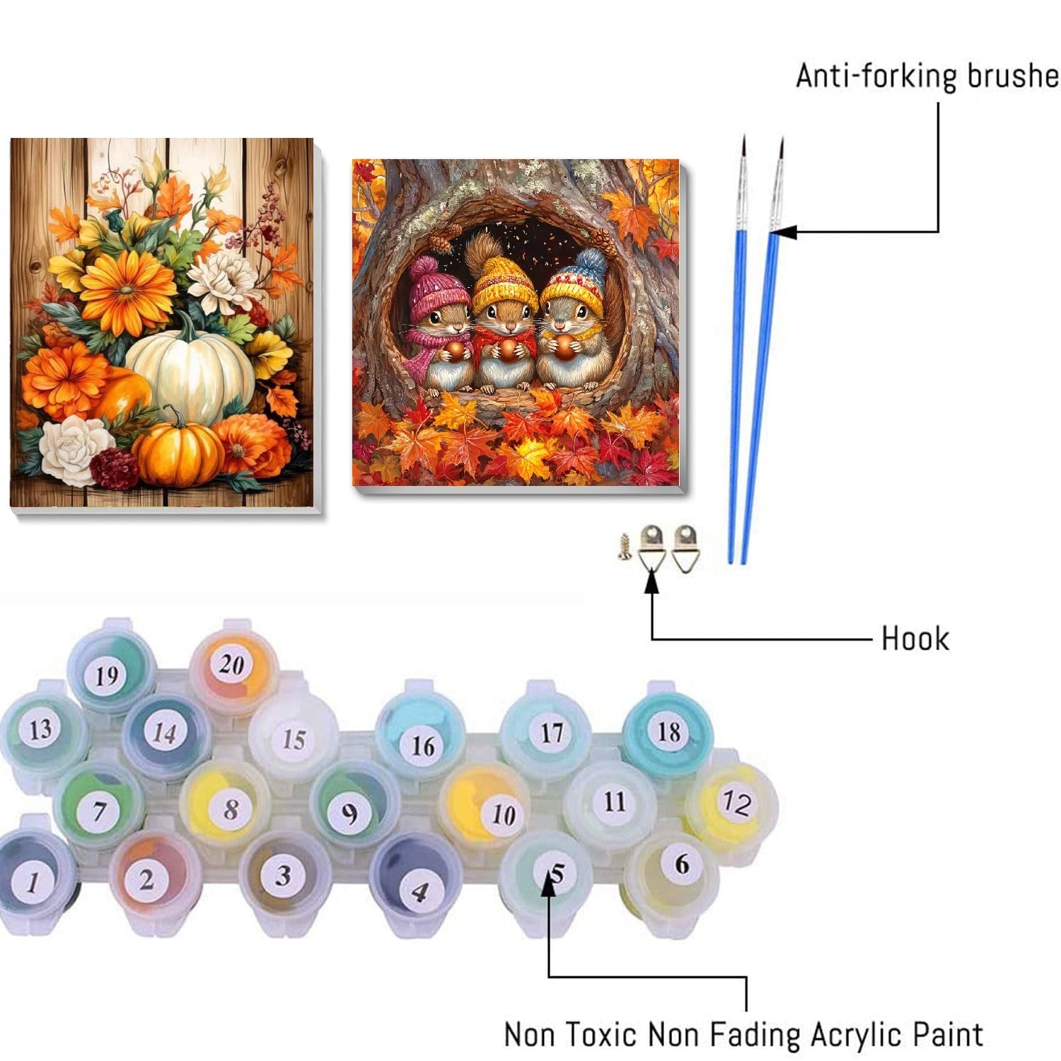 - 【Paint By Numbers Kit For Adults】Acrylic DIY paint by number for adults has a complete tool kit, including 4*nylon brushes, 4*hook nails, 2*matched Acrylic paint and 2*HD With Framed Canvas. Open the package and you can start painting immediatelyat. we will provide you with everything you need to paint.