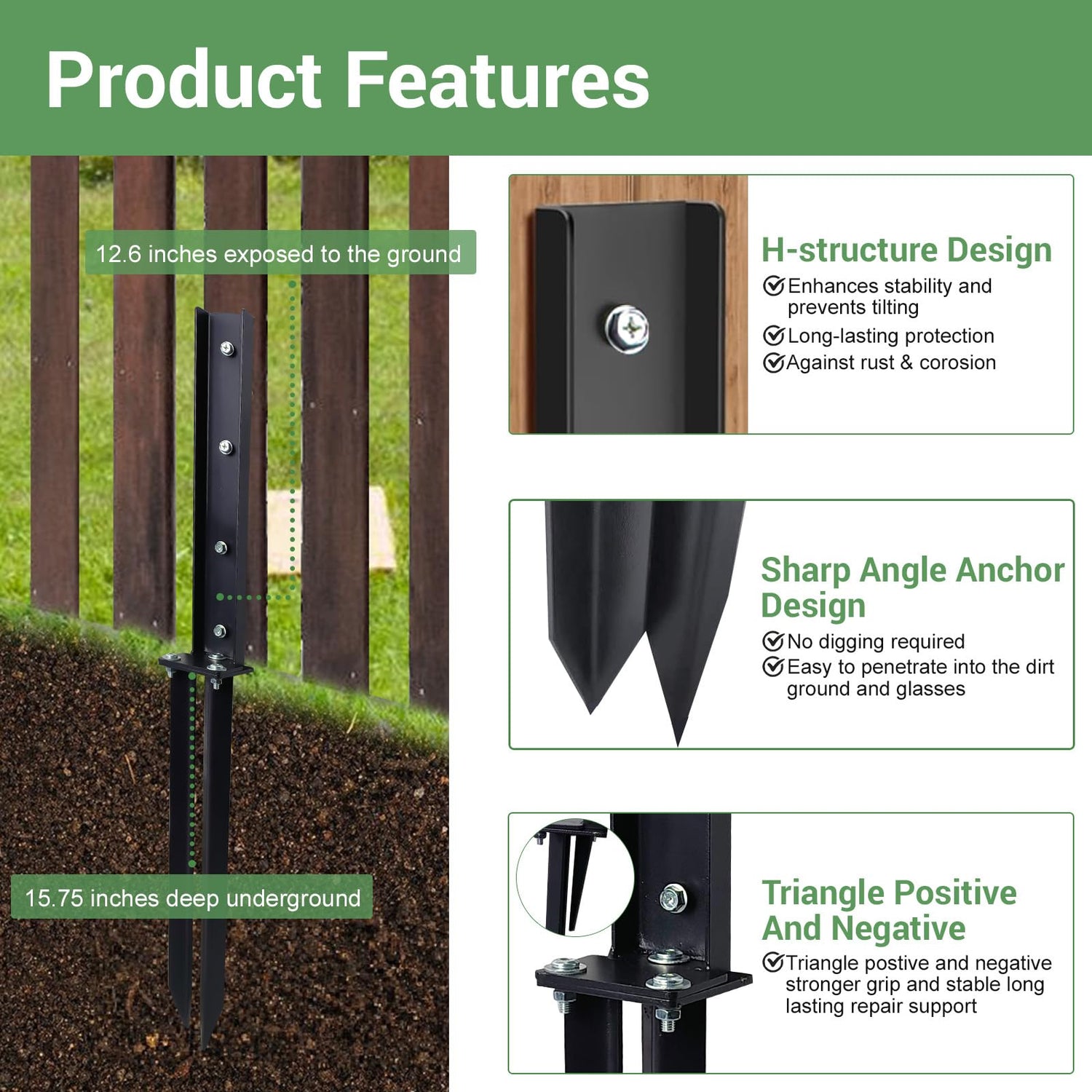 - 【Strong Stability】Fence Post Anchor Ground Spike Adopts a "h" Design, Which provides stronger support and stability than a straight spike, while allowing it to bypass the concrete area around the post.