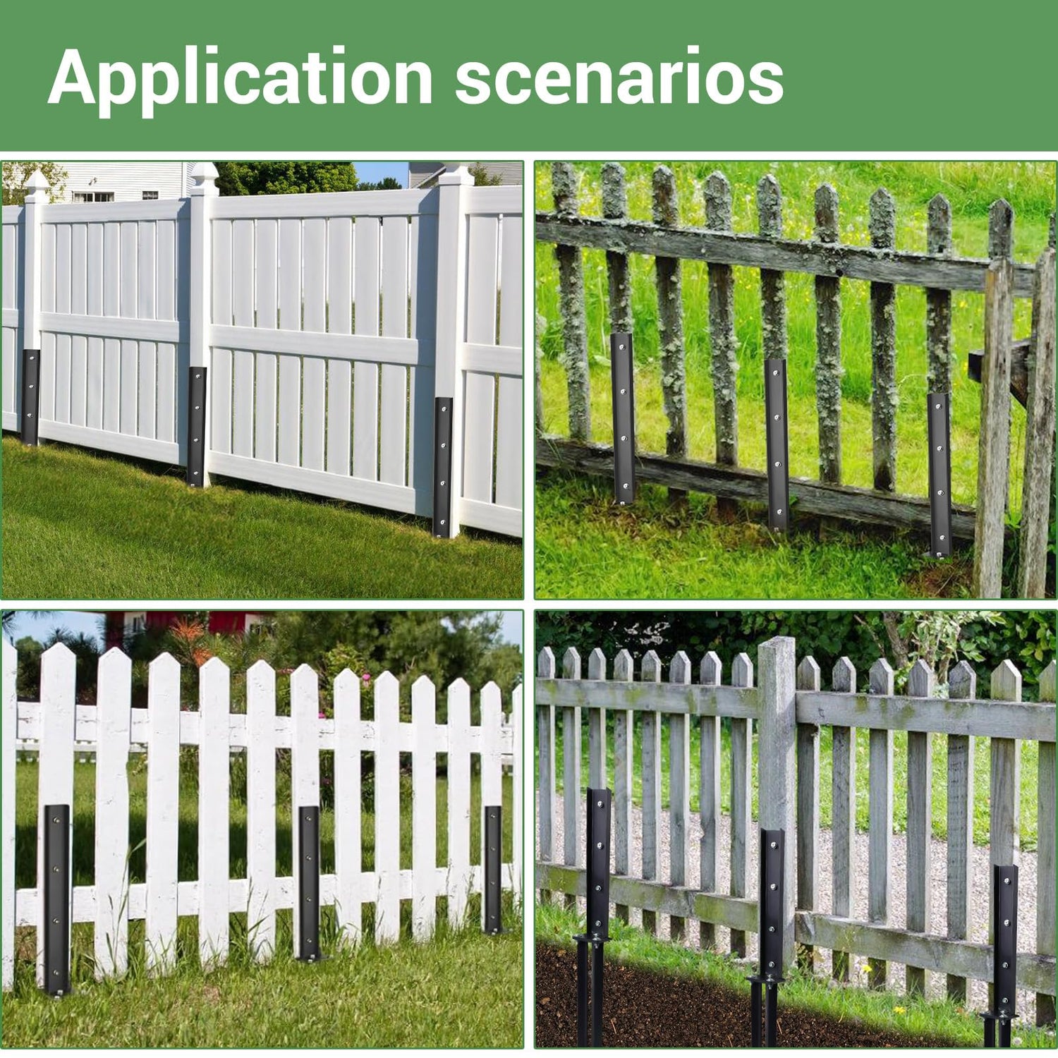 - 【Widely Use】The fence post repair bracket can be widely used to reinforce and repair inclined and rotten wooden piles without removing the post or any part of the fence.Fence Post Anchor are ideal for repairing and reinforcing leaning wood and metal posts in various scenarios such as gardens, estate, yards, pergolas, towers, road security signs, farm fences, real estate boundaries.