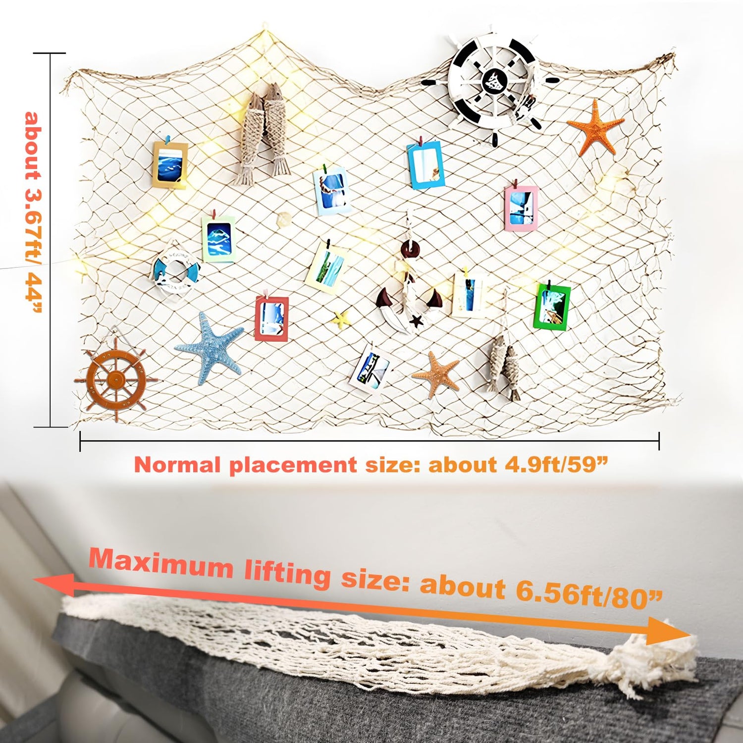 - Fish Cord Net - Natural Cotton Fish Net decorative. Fishnet decor Measures 78.7inch x 39.37inch. Great for House, party table decorations.
