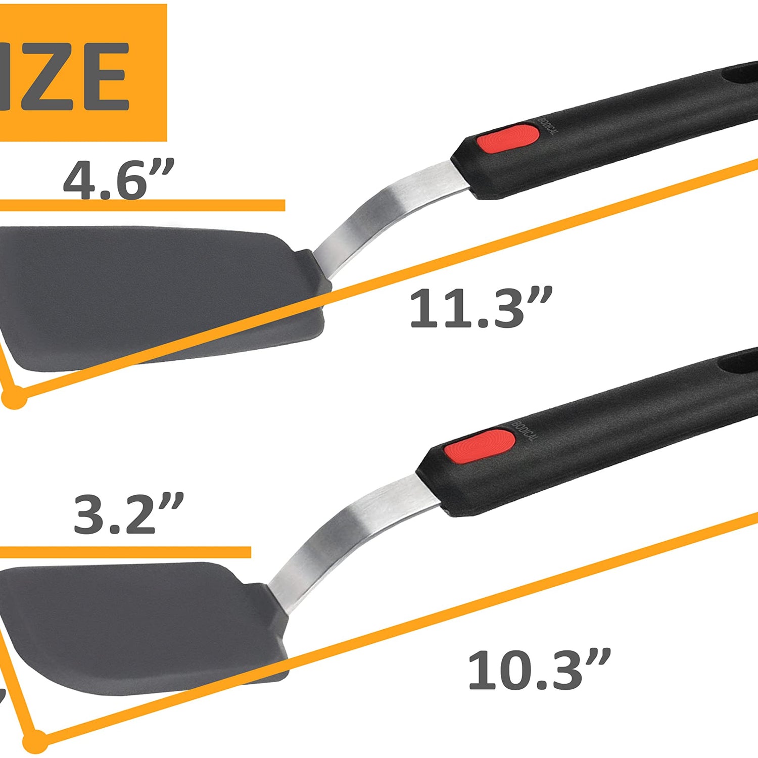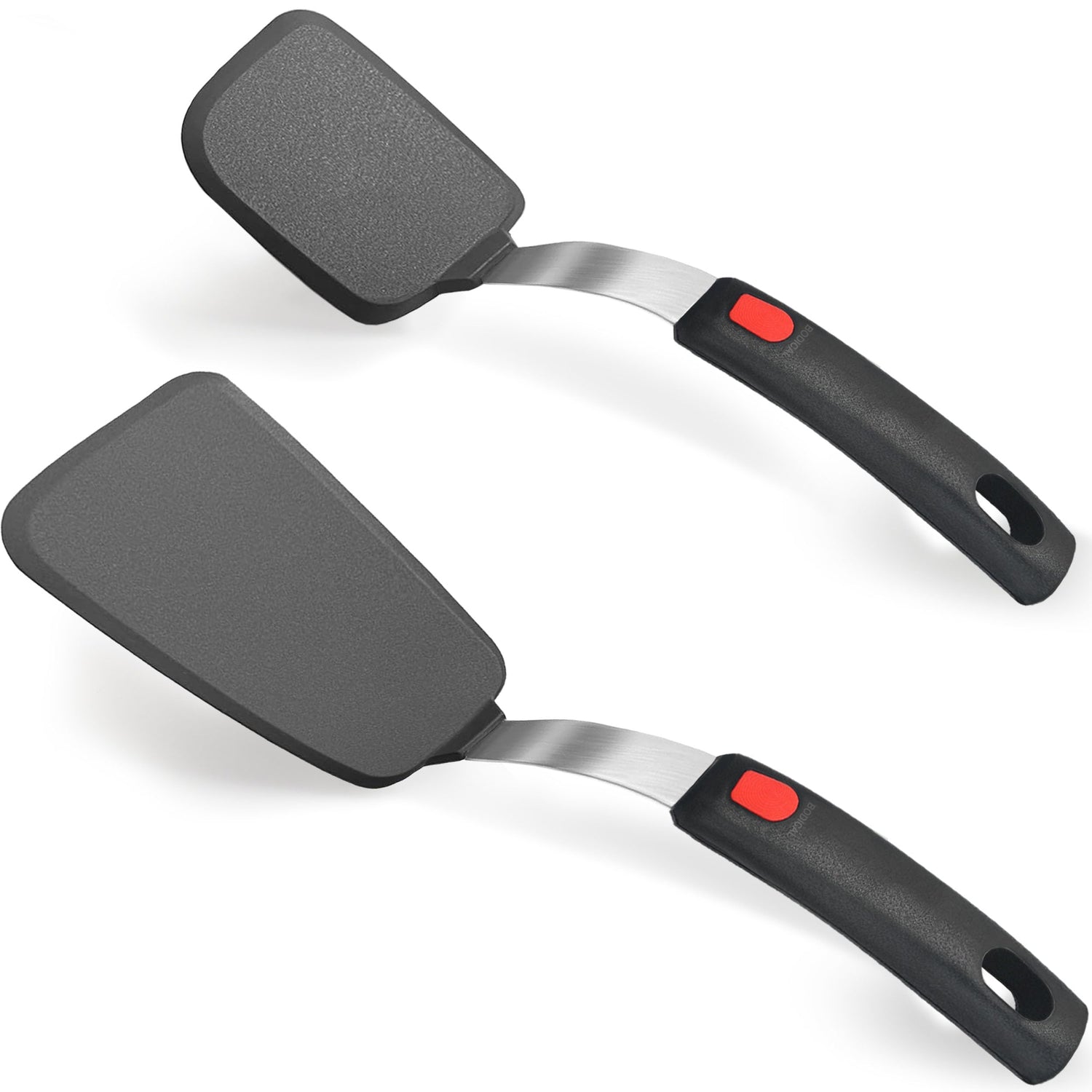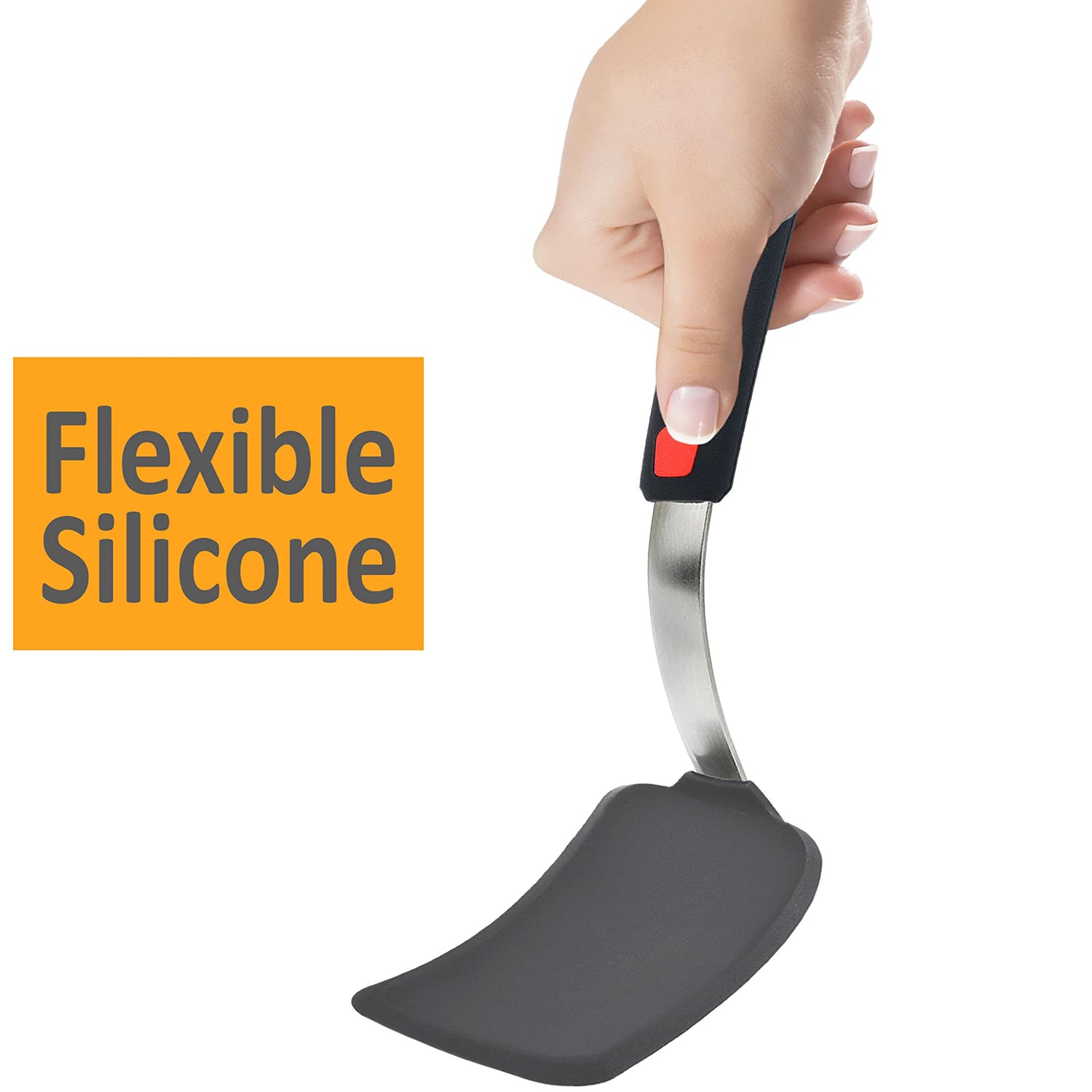 - SILICONE SPATULA SET - Pack with large and small spatula turner set. Constructed with a easy grip nonslip handle, outer silicone layer bonded with a flexible stainless-steel plate. Flippers for eggs, cookie, pancake, burgers, crepes and more.