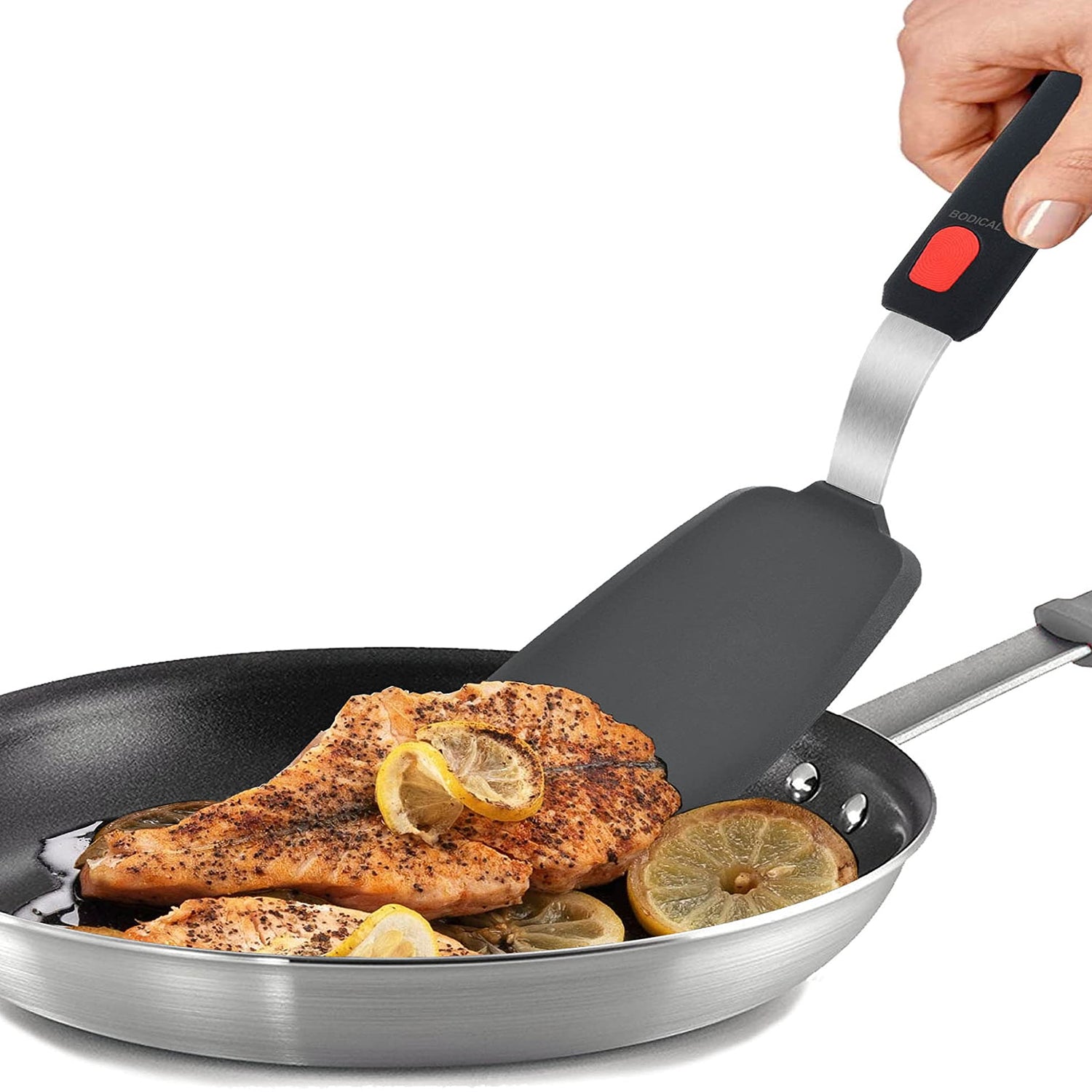 - NO MELT SILICONE GRIP - The spatula handle coated with high heat resistant silicone too, non-slip grip makes the tool easy to use,and will not melt even close to the fire or hot pans. Dishwasher safe.