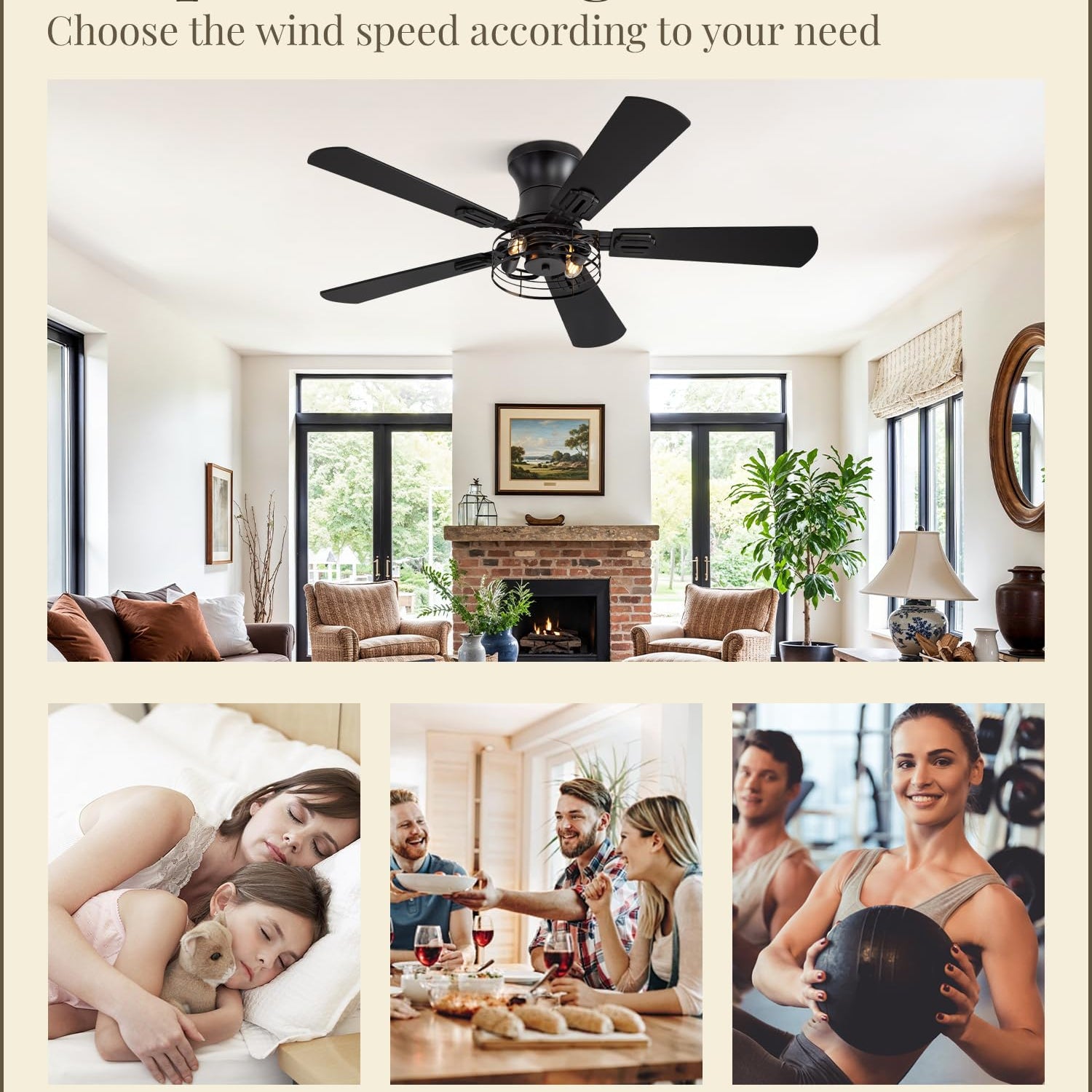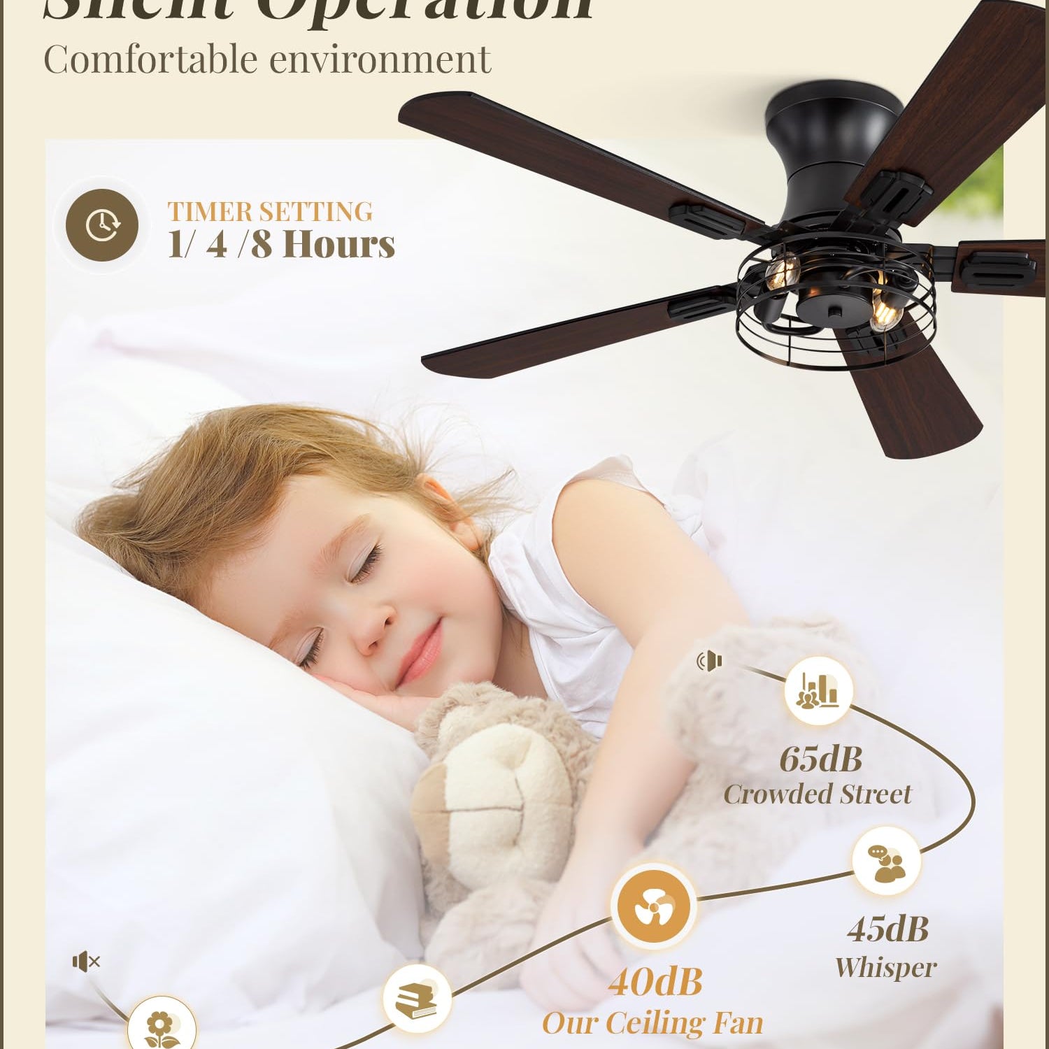 - Quiet Comfort: The 42 inch ceiling fan with light offers a offers a comfortable environment with a noise level below 40dB. Perfect for bedroom, living room, store and which is is recommended for rooms below 10 ft x 10 ft