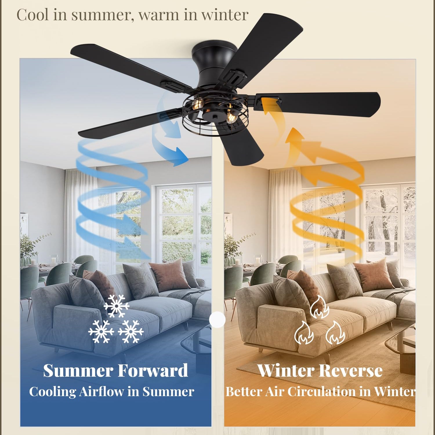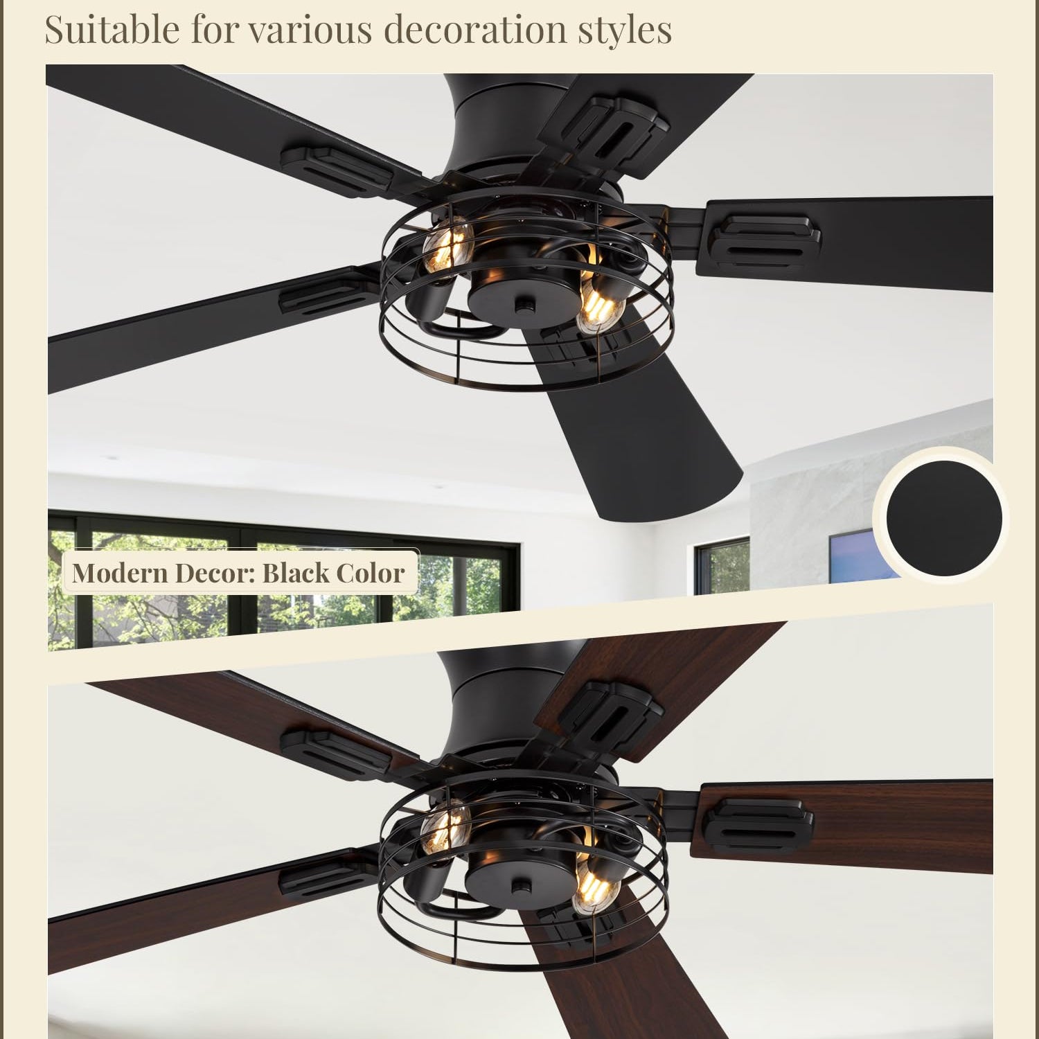 - Classic Farmhouse Decor Design: This 42 Inch closed caged rustic ceiling fan is peferct house decor which combines design and function. We also provide 2 double-sided color blades for you to choose to suit the modern style