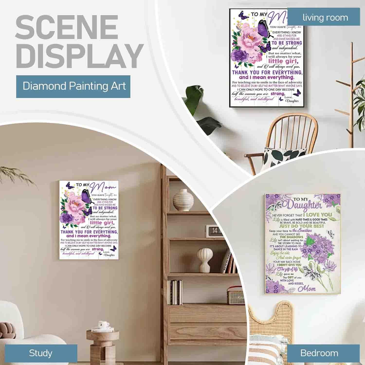- Home Decor: Decorated with Mom & Daughter diamonds pictures gem art crafts, your bedroom, living room, study or office can be more colorful and make your staying in these places more enjoyable.