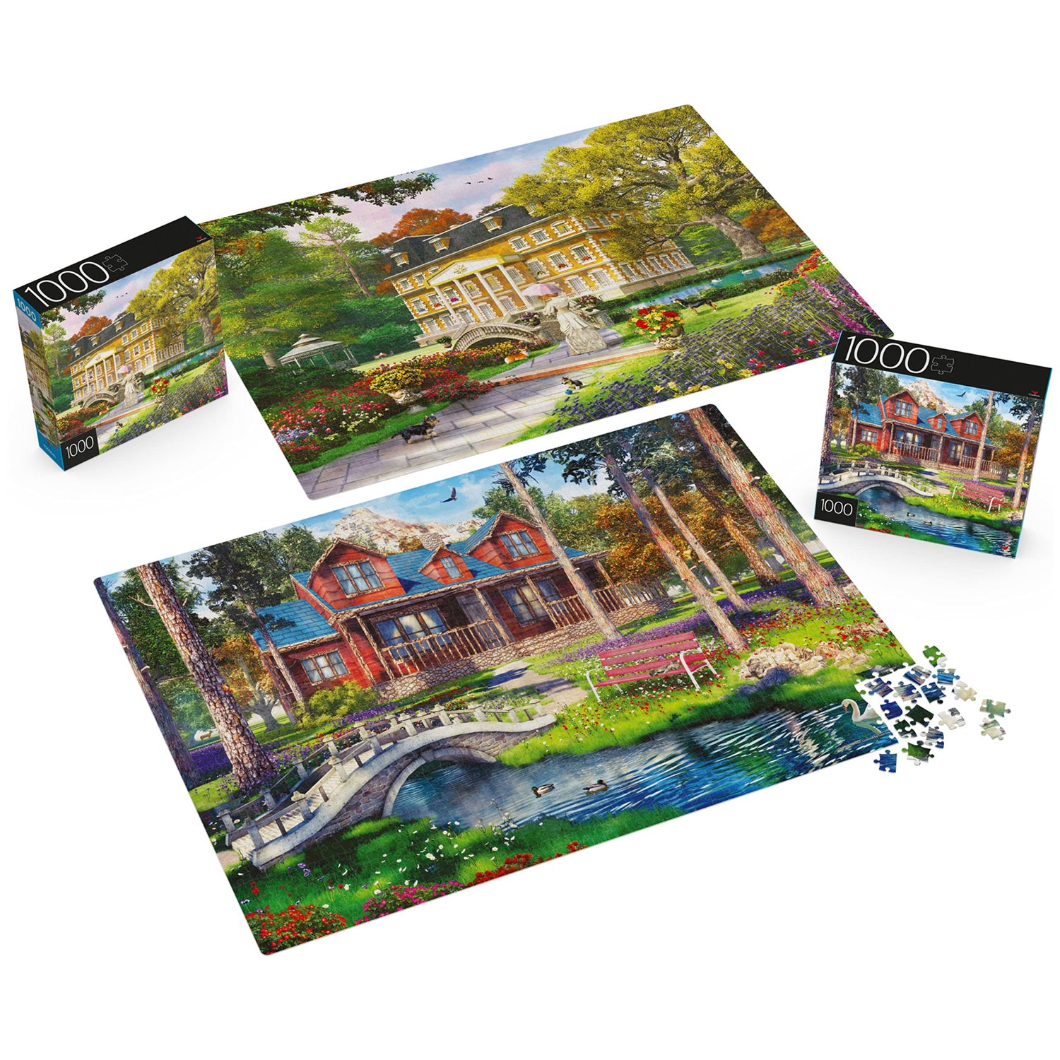 2-Pack of 1000-Piece Jigsaw Puzzles, Pine Cabin & Summer Estate | Puzzles for Adults and Kids Ages 8+, Amazon Exclusive