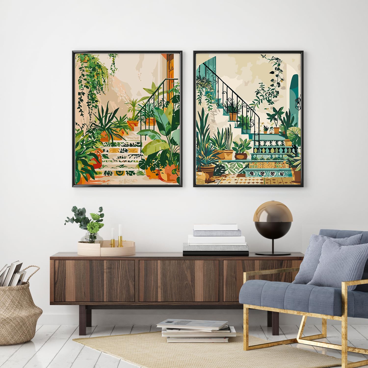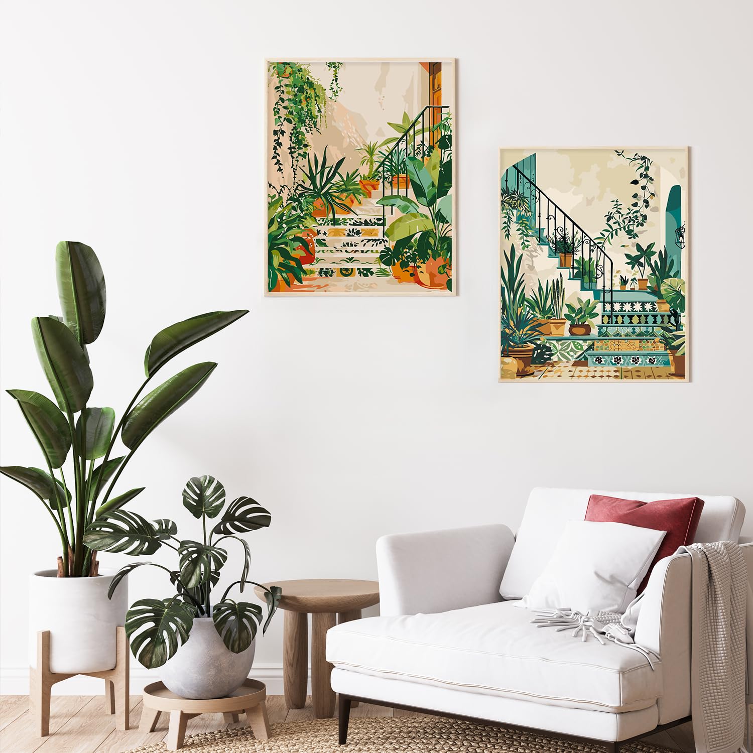 2 Pack Paint by Numbers Kit for Adults Beginner, Boho Green Plant Adult Paint by Number Kits on Canvas, DIY Acrylic Number Painting for Adults for Home Wall Decor Gift 16x20 Inch