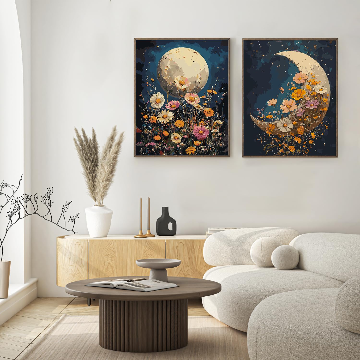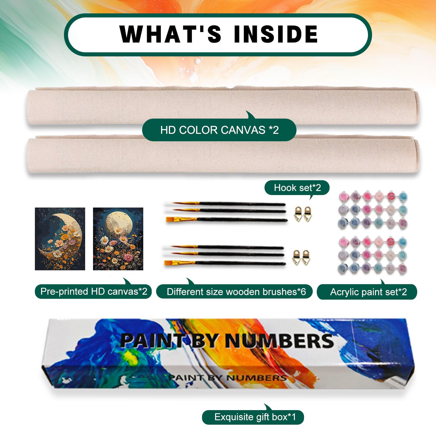 2 Pack Paint by Numbers Kit for Adults Beginner, Moon Flowers Adult Paint by Number Kits on Canvas, DIY Acrylic Number Painting for Adults for Home Decor Gift 16x20 Inch
