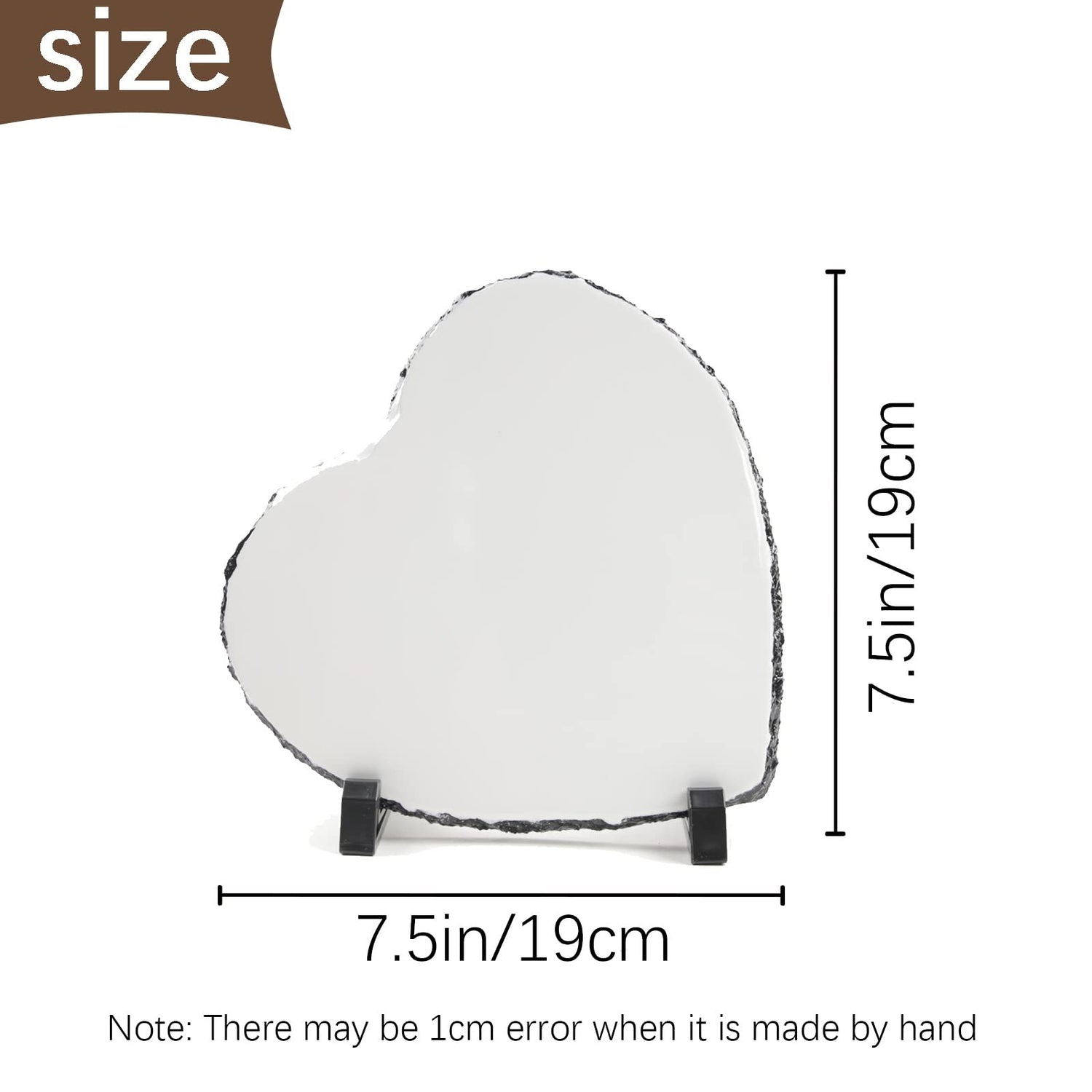 2 Pack Sublimation Slate Blanks 7.5x7.5 Inch Heart Custom Stone Slate Picture Frame Heat Transfer Rock Photo Plaque with Display Stand Decoration for Desktop Souvenir DIY Personalized Gift