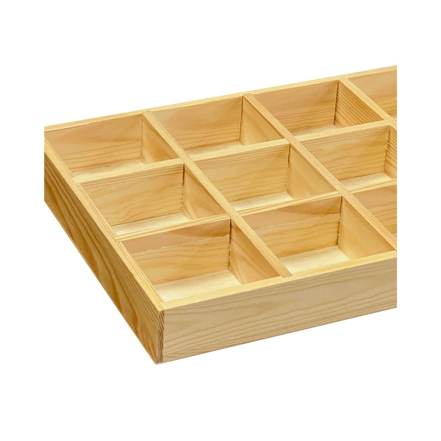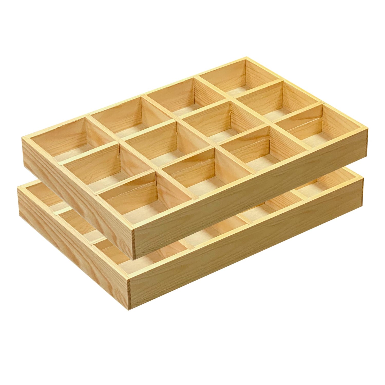 2 Pack Wooden Sorting Tray Grid Display Wood Divided Organizer Vanish Finished Section Box (12 Compartments,12.9 x 9.1 x 1.55 Inch Each Tray)