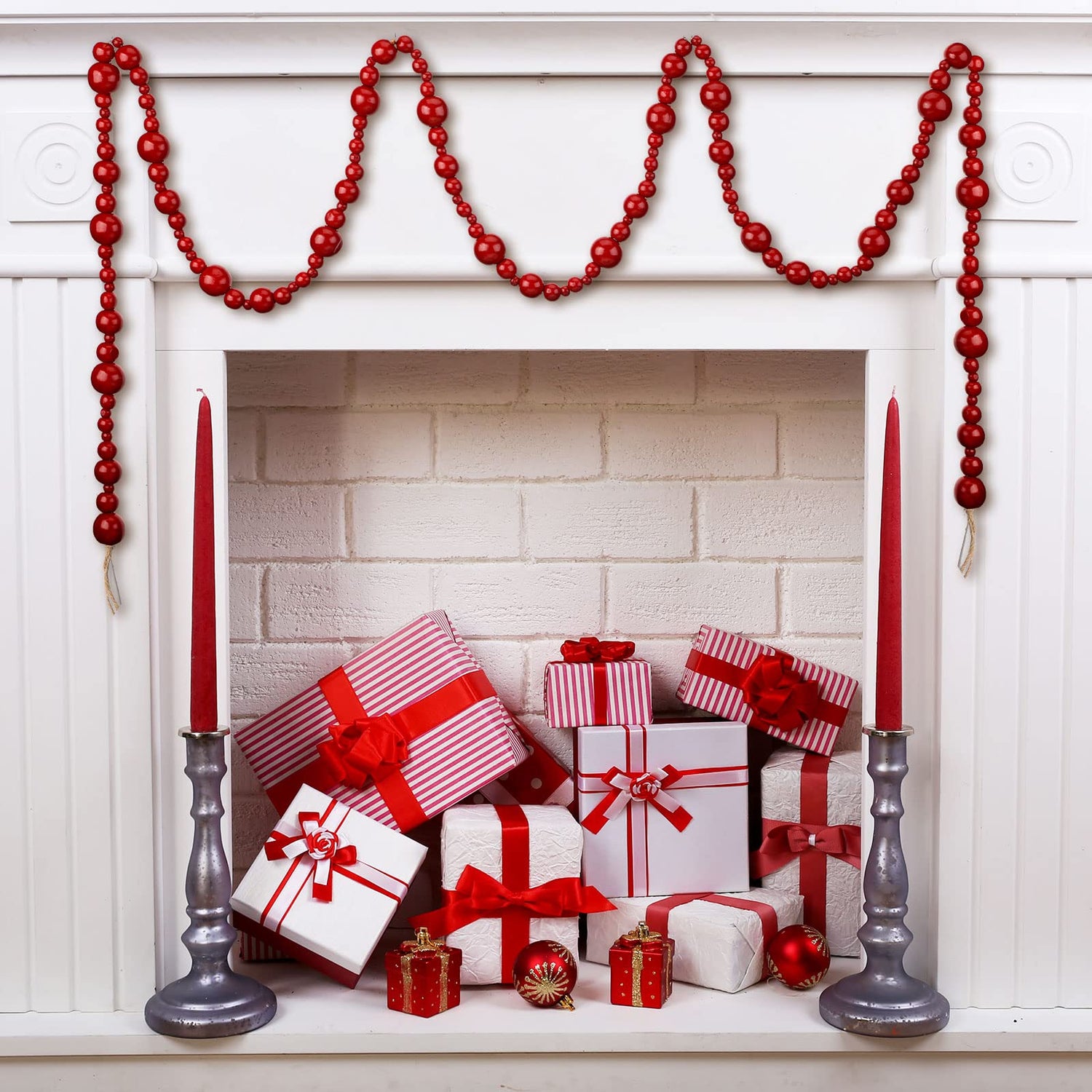 - Where to Use: the beaded garland can be applied as a fireplace ornament, can be hung on Christmas trees, door handles, stairs, windows, walls, on bottles, table tray and more places to decorate your home, creating a festive atmosphere