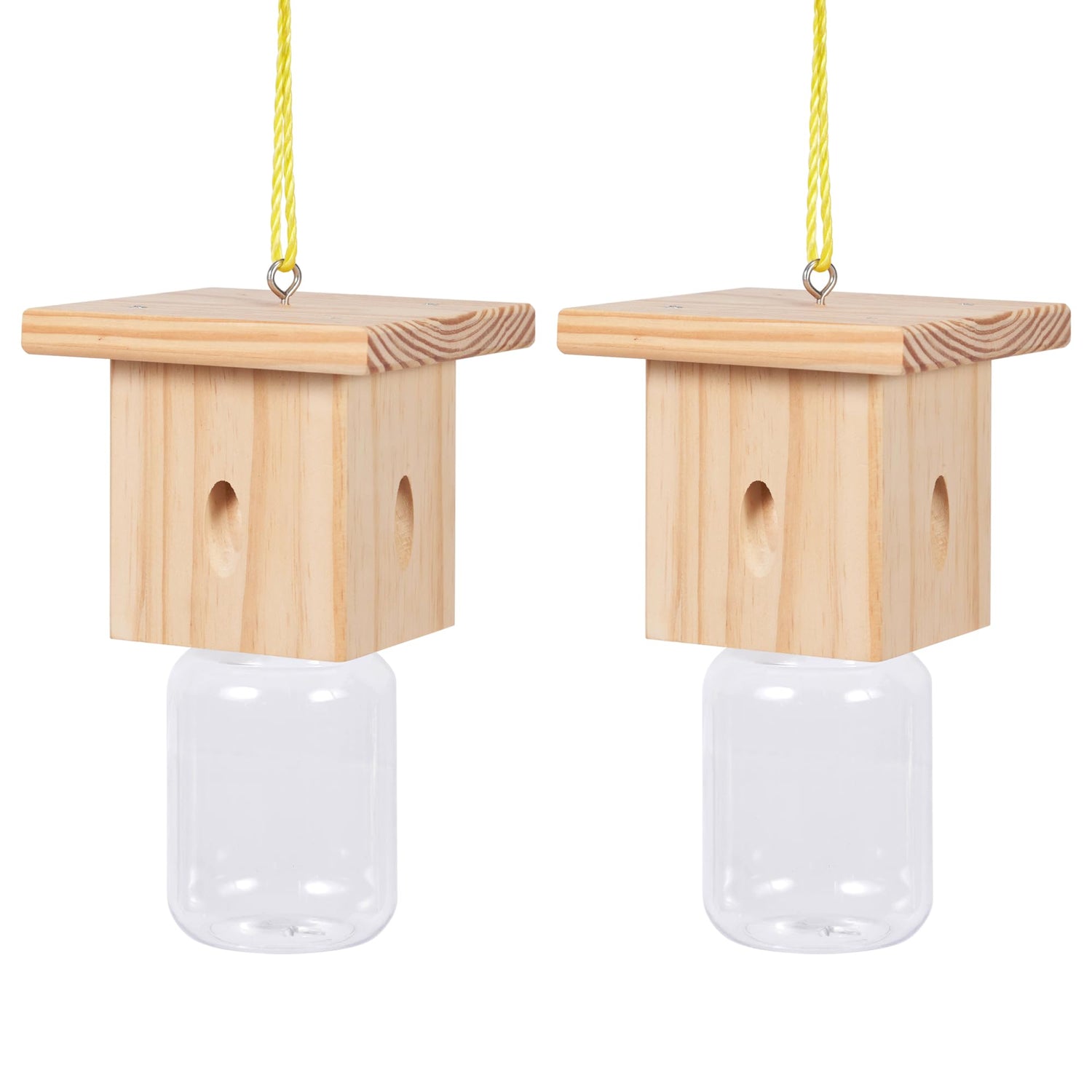2 PCS Wood Carpenter Bee Trap for Outside - Best Bee Trap - Nature Hanging Carpenter Bee Traps Plastic Jar Outdoor - Insect Traps