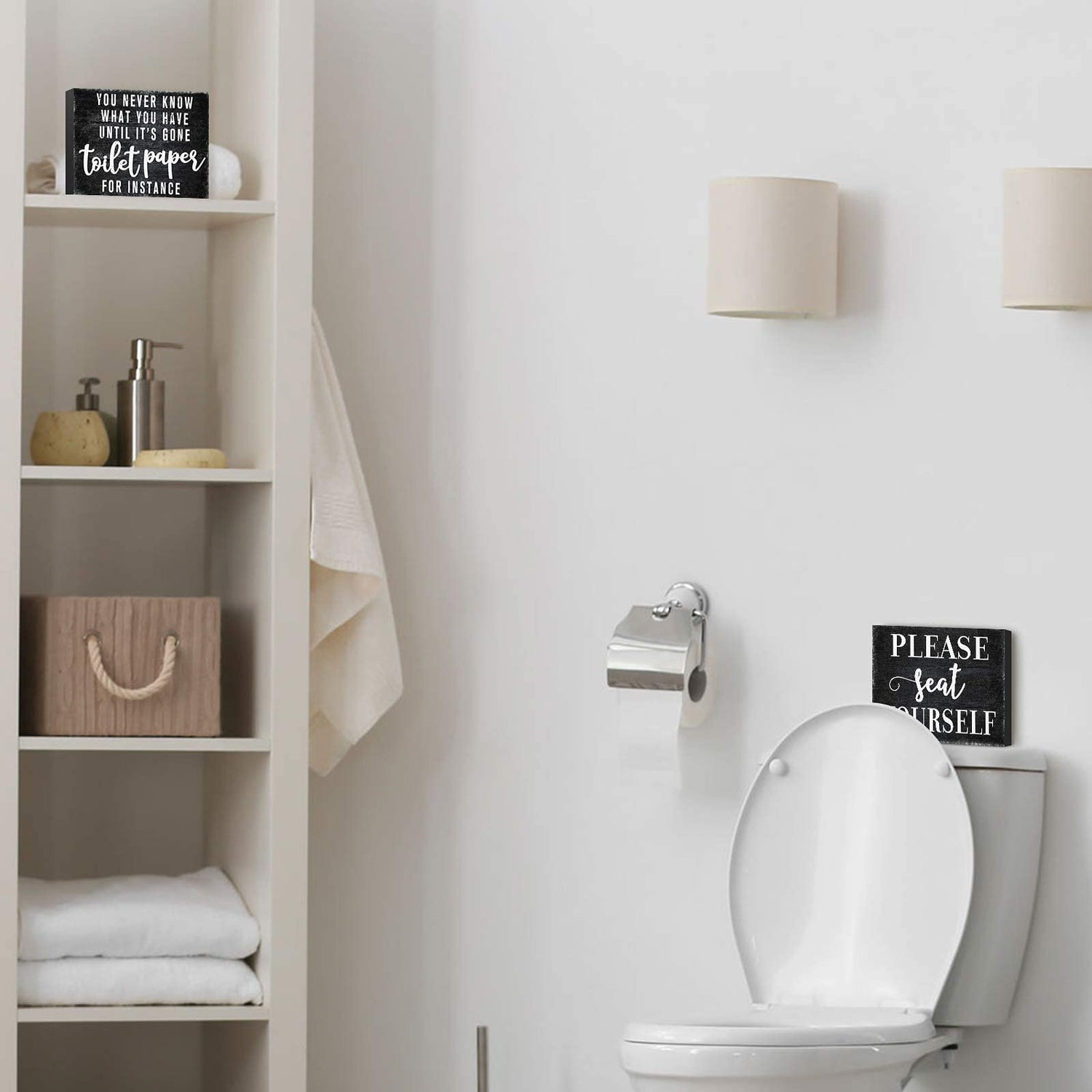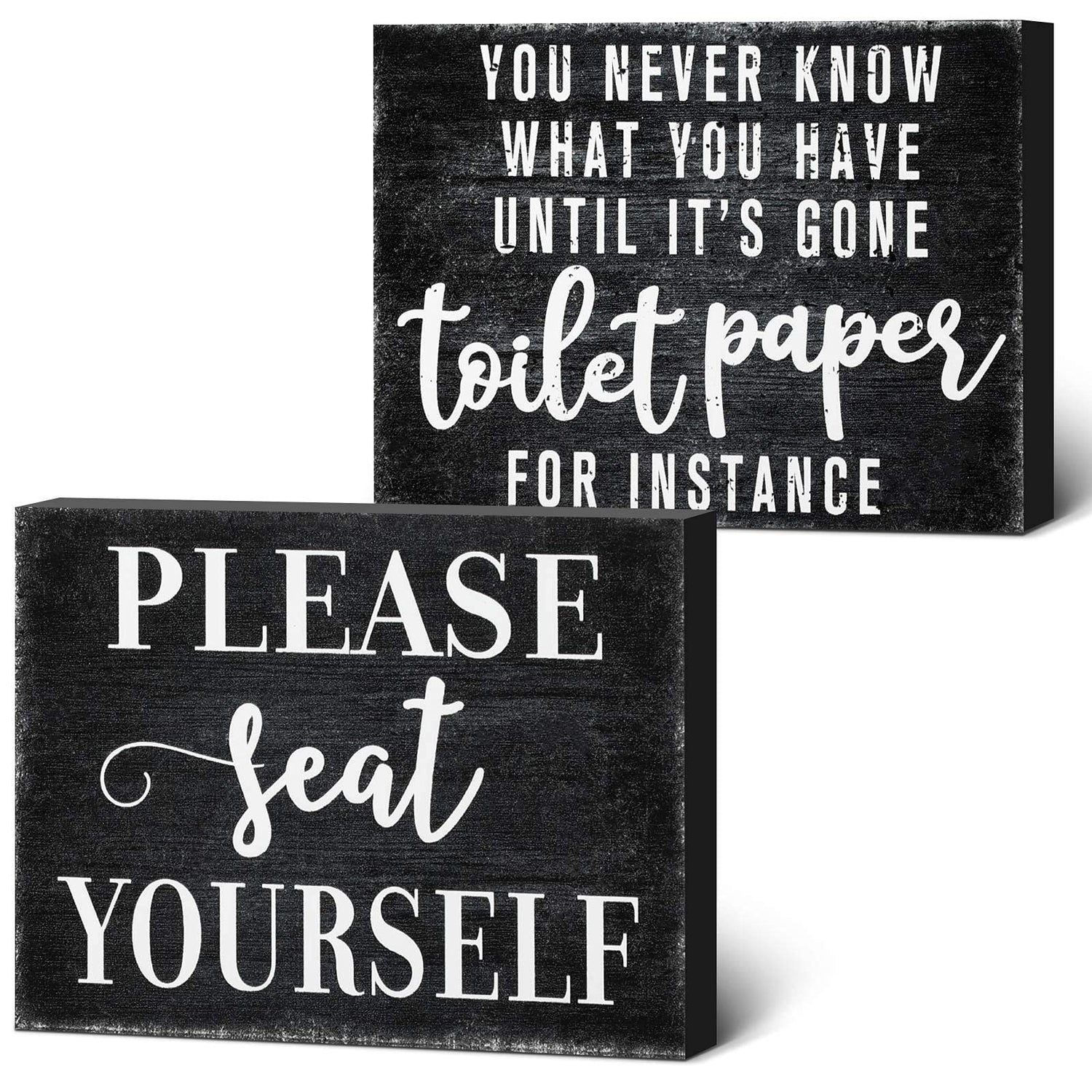 - Farmhouse style: rustic wooden bathroom decoration adopts classic design and funny sayings [Please Seat Yourself] and [You Never Know What You Have Until It's Gone, Toilet Paper for Instance], thereby creating an interesting rural farmhouse landscape and stylish look