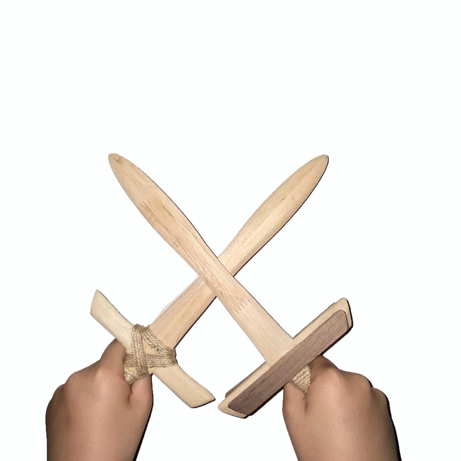 2 Pieces - Handmade Wooden Crafts, 12-inch Prop Wooden Sword. Role Play, Costumes, Props, Indoor and Outdoor Exercises (not Weapons)