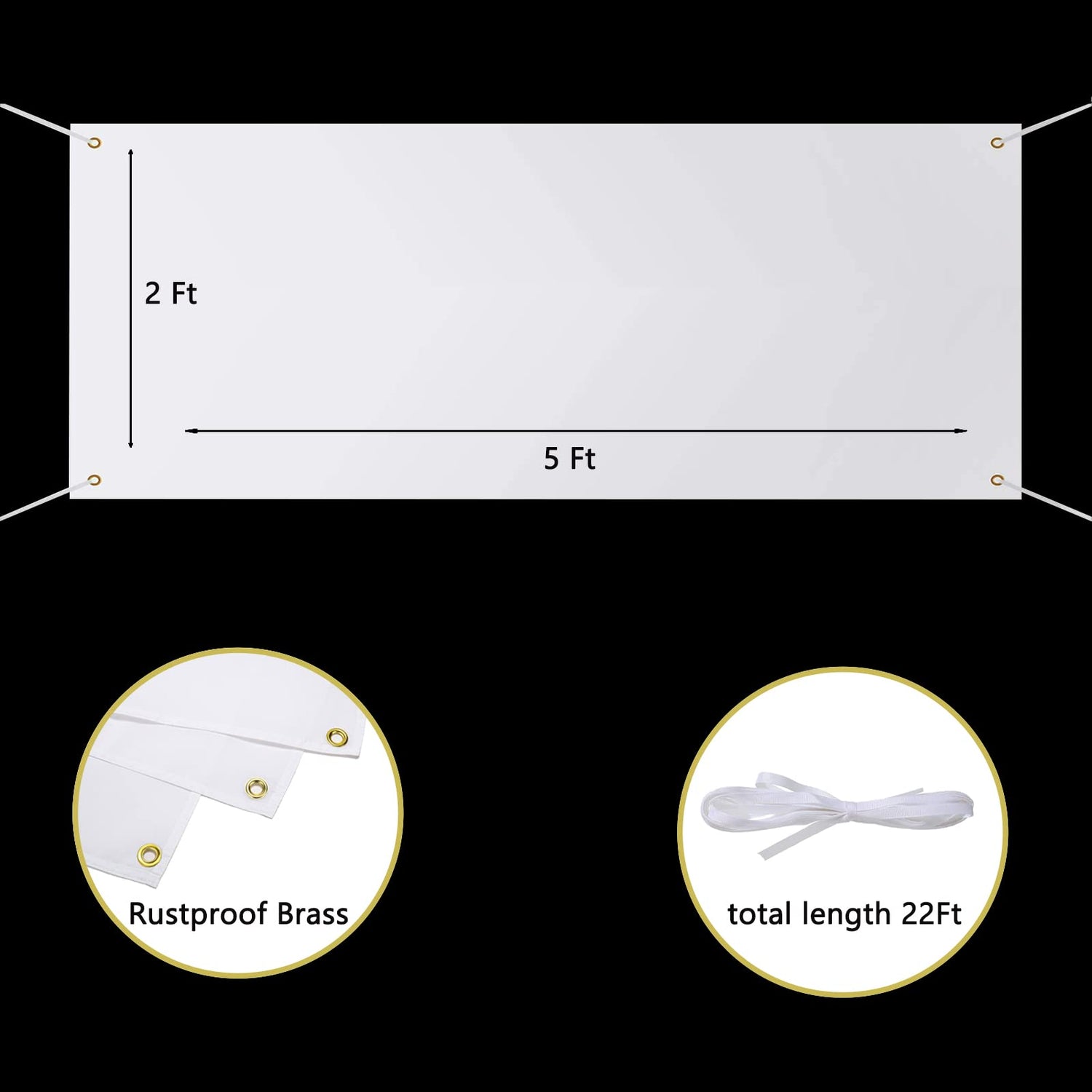 Details: 2 Pieces Large Banners Signs Polyester Oxford Cloth Sublimation Banner with Rope for Indoor Wall Outdoor Easy Hang Sign DIY Banner Sign for Business Office Supply (White,2 x 5 Feet)