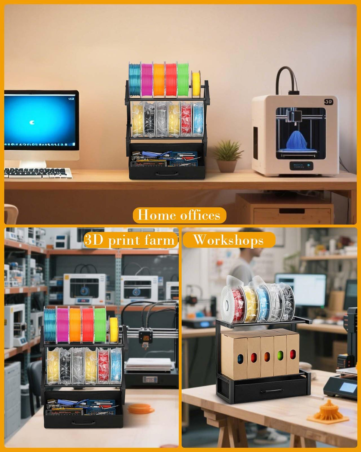 - 2-Tier of Desktop / Floor 3D Printer Filament Storage Racks: it fits standard 1Kg rolls fine, and even smaller 250-500g spools. Keeps PLA, ABS, and TPU spools neatly organized and readily accessible, preventing tangles or damage and streamlining your printing process.