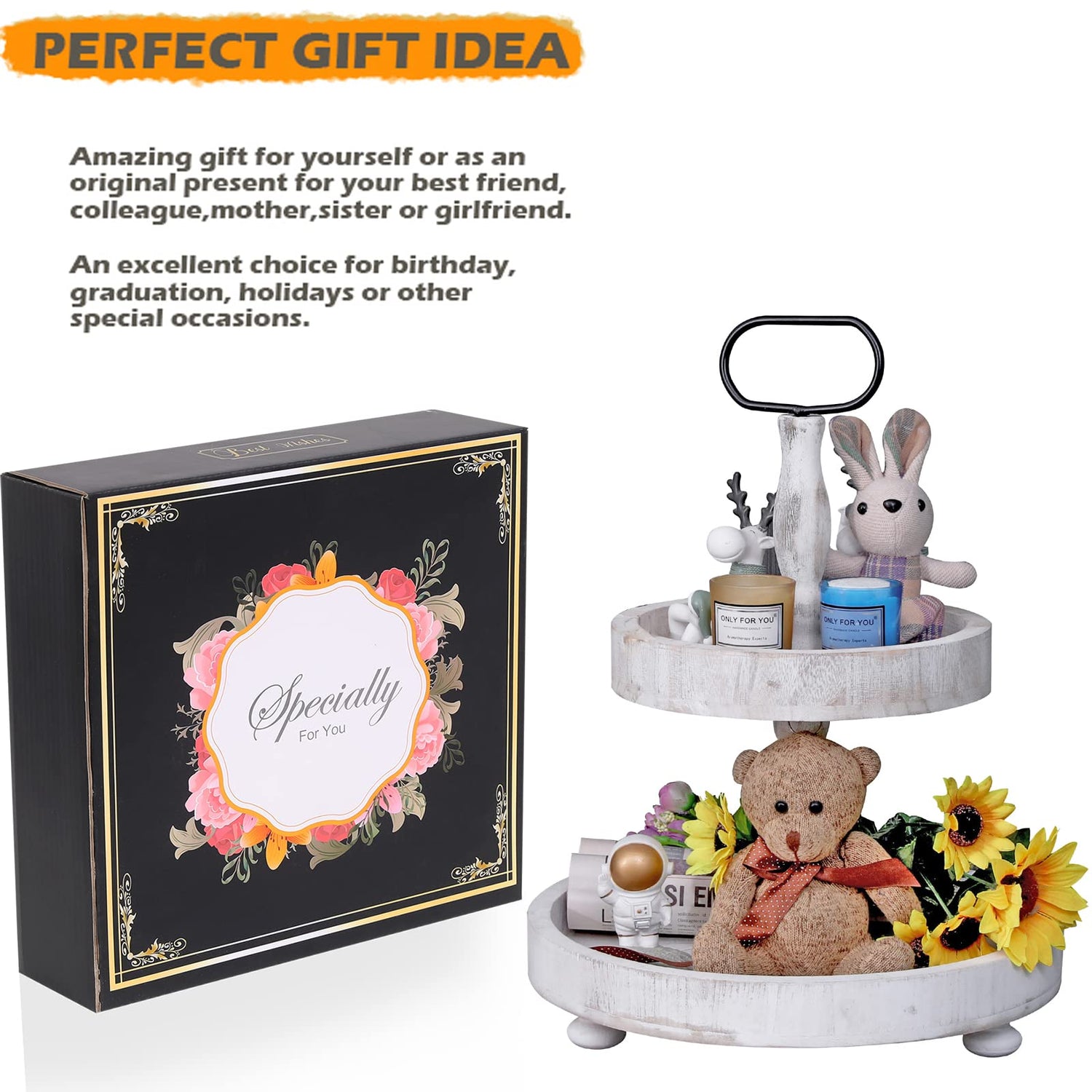 - FOR ALL OCCASIONS This unique and elegant display stand is perfect in your kitchen, dining, or living room! Serve cupcakes or decorate for your next tea party, wedding or baby shower, holidays, and is great for everyday use! The options are endless with it s multipurpose design. Delivered in a charming box to be gift-ready for loved ones