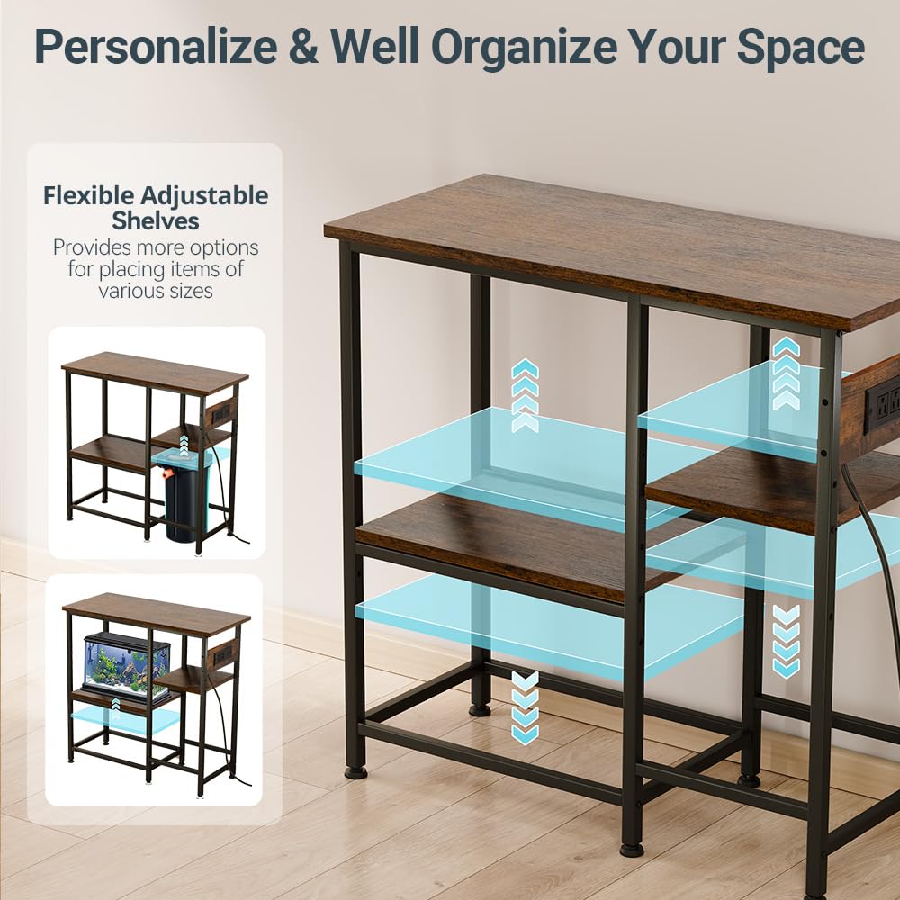 20-29-37 Gallon Fish Tank Stand with Power Outlet, Metal Aquarium Stand with Height-Adjustable Stoarge Shelves, 6-Leg Reptile Tank Stand, 400lbs Capacity