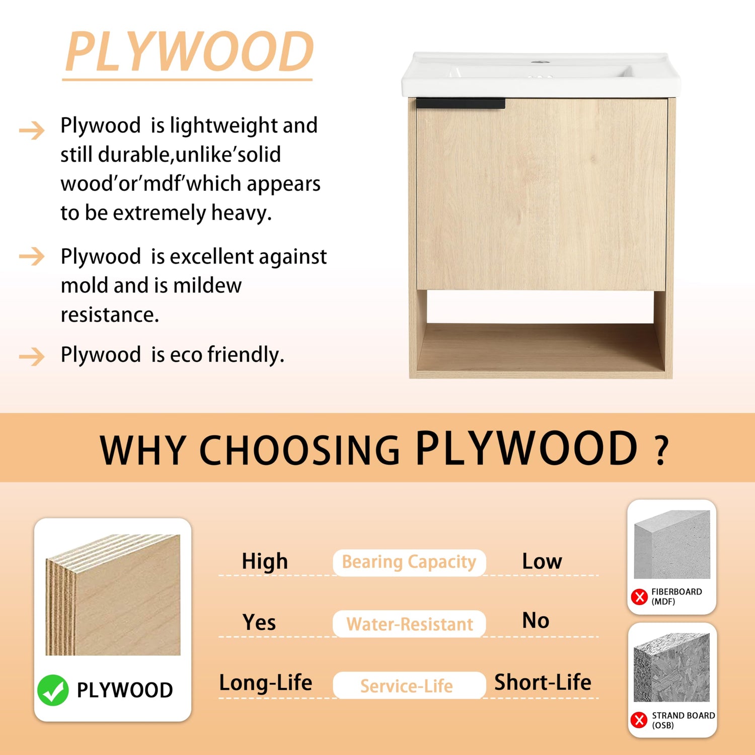 - 【Long-lasting Material】Our vanity base is made of high-quality plywood with a surface material that is scratch and water-resistant melamine. Long-lasting and eco-friendly for your peace of mind.