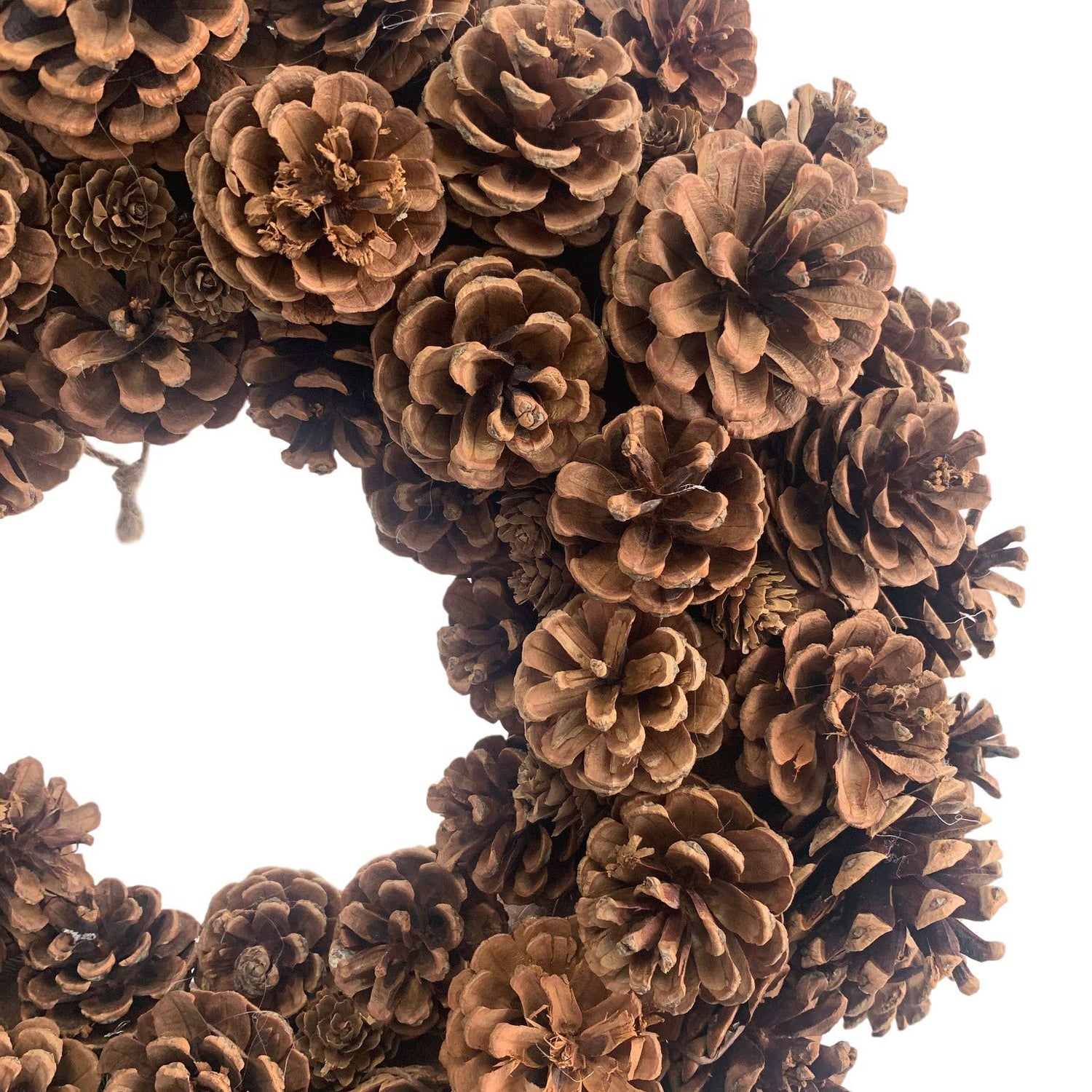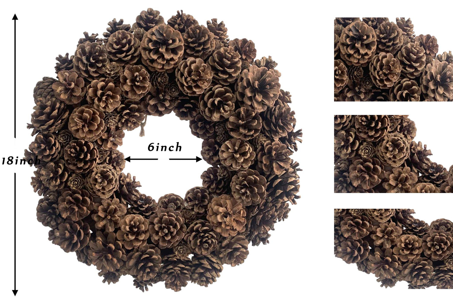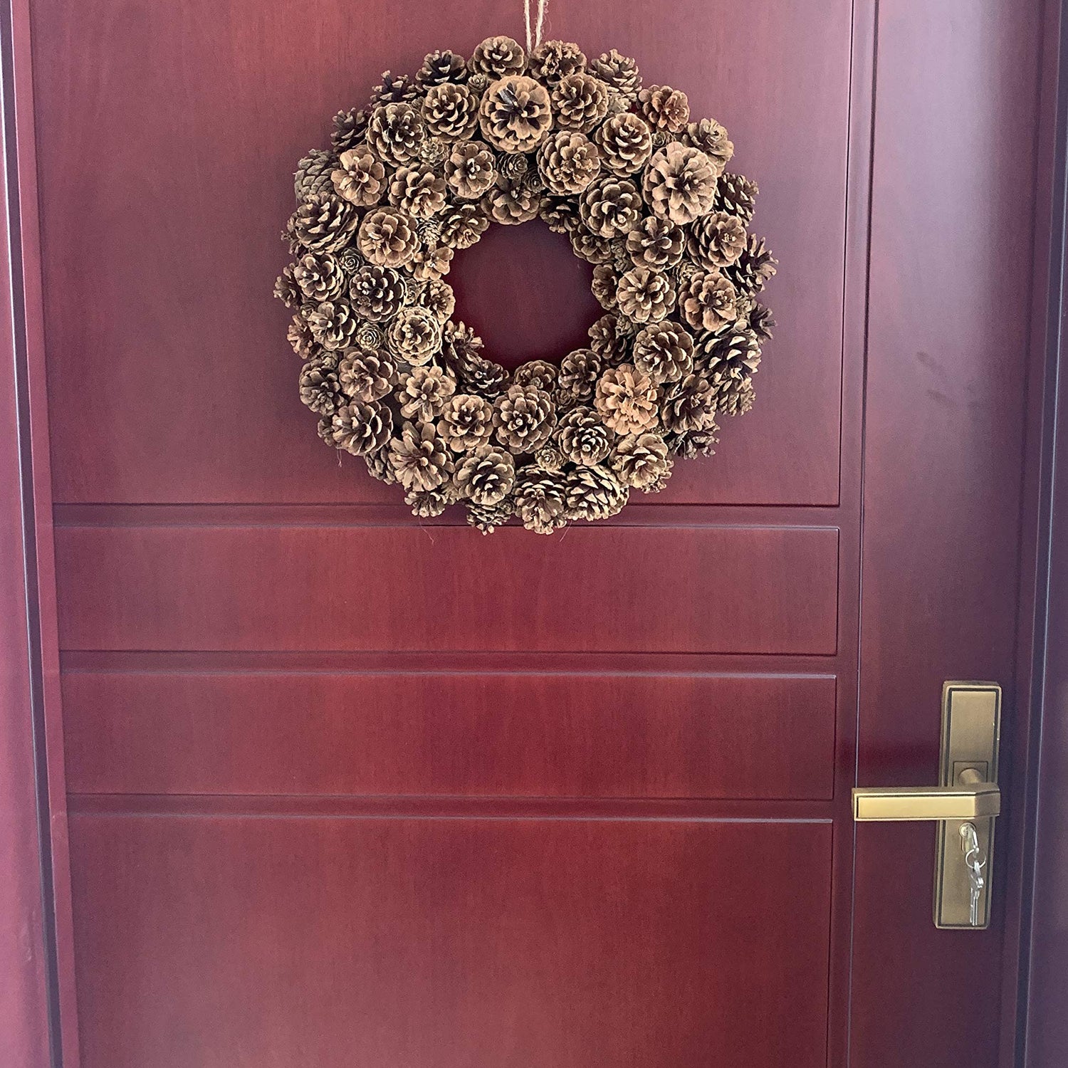 - Unique Design- Made of natural pinecones, bright and gorgeous. The wreath is fixed on a polyfoam base. Bring the harvest joy to your home. Ideal ornaments to hang during Fall Harvest, Autumn, Christmas, or hang wherever you like