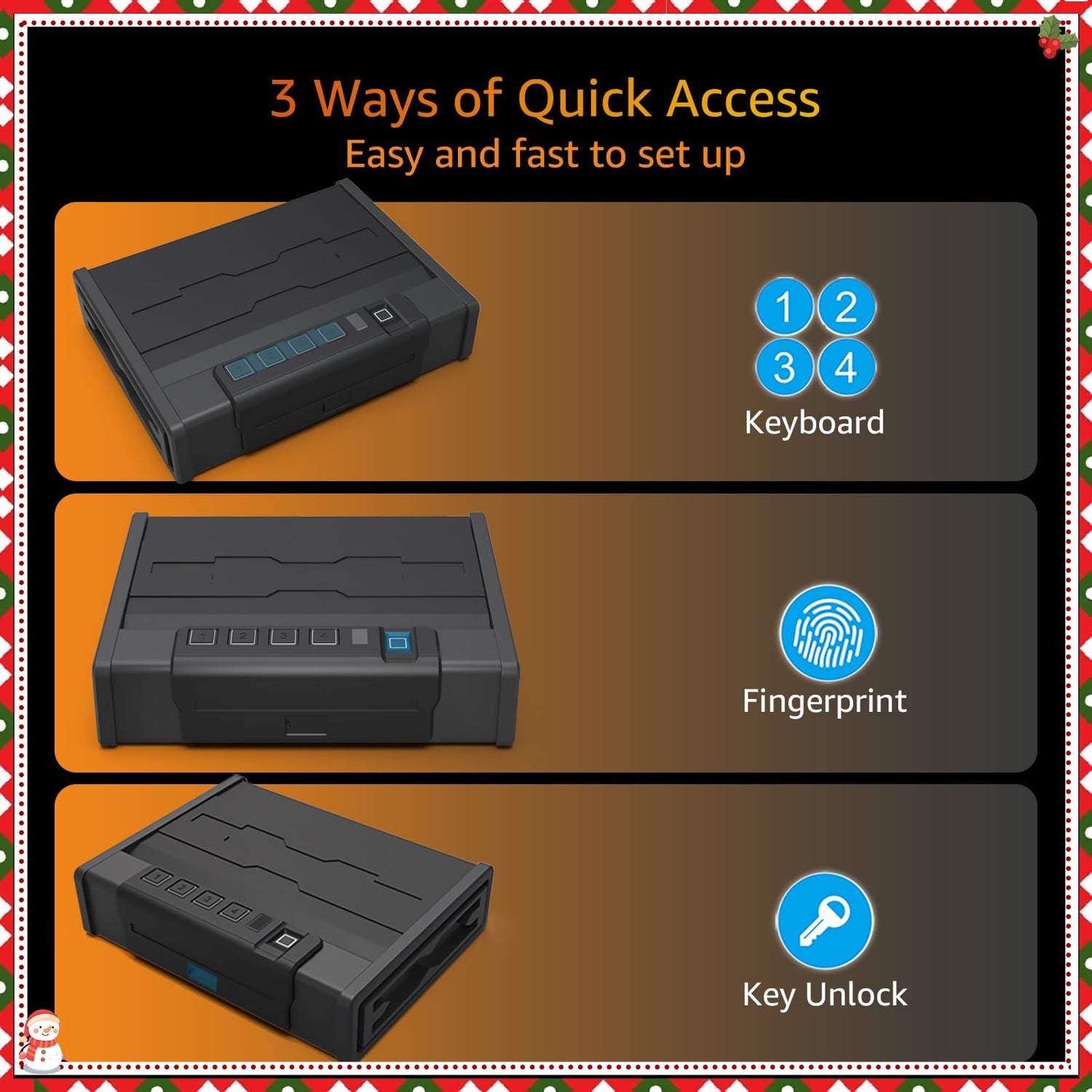 - ✅【Fingerprint+Keys+Password】Quick-access biometric gun safe is absolutely important for you and your family.3 ways to open the safe!The safe can be opened within 0.5 seconds.Fingerprint+Keys+Password provide the possibility of quickly opening a safe.Note: Do not place the key in the safe!!