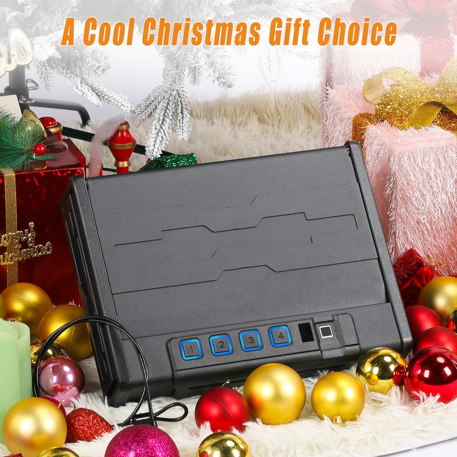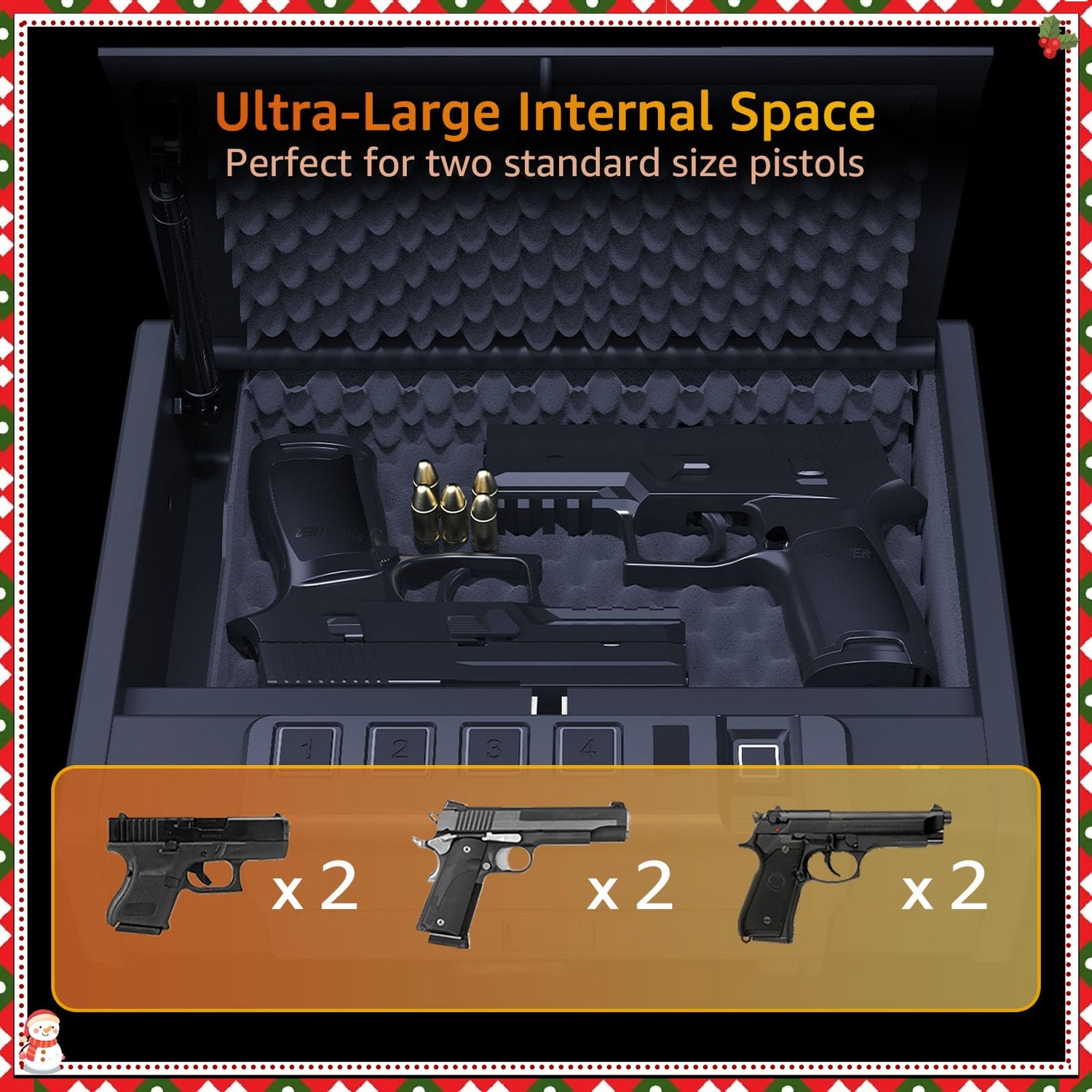 [ 20% Larger capacity ] Biometric Gun Safe for Handgun,Fingerprint Safe Box for Guns,Electronic Quick-Access Pistol Safe Nightstand hidden gun storage for Bedside Home Lock Box,Black