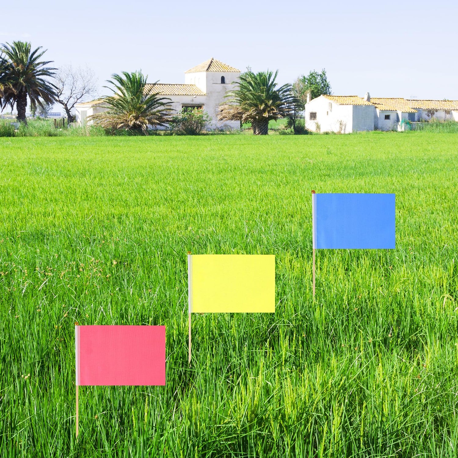 - VIBRANT AND LONG-LASTING COLORS - The marking flags for lawn feature vivid colors that are fade-resistant, maintaining their brightness even after exposure to sunlight and harsh weather conditions, perfect for outdoor decoration.