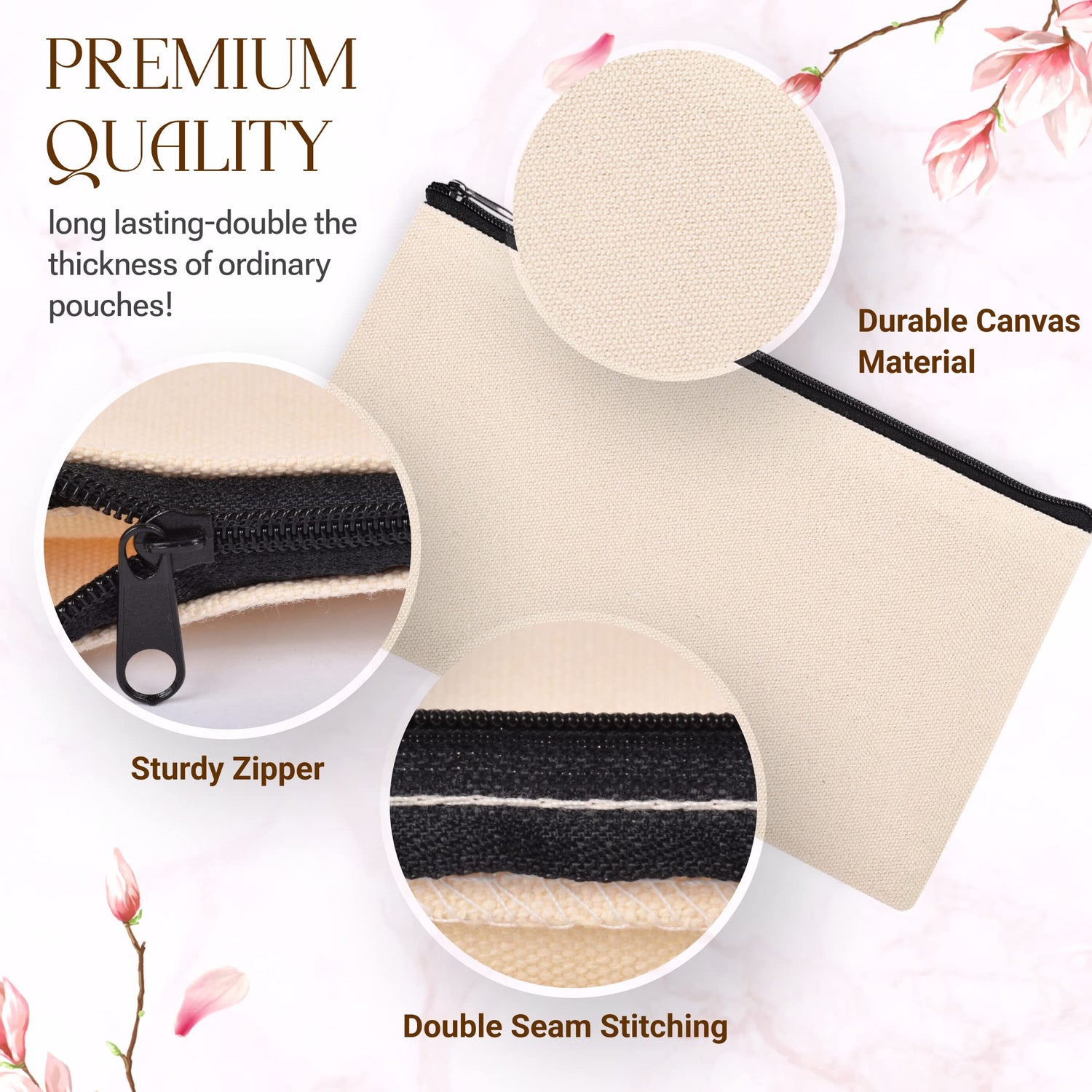 - CONVENIENT PACK: Travel with confidence with our lightweight canvas zipper pouch. Built using plain-woven, unbleached canvas for premium quality. Spend less time searching for items. Each canvas makeup bags bulk are blank on both sides