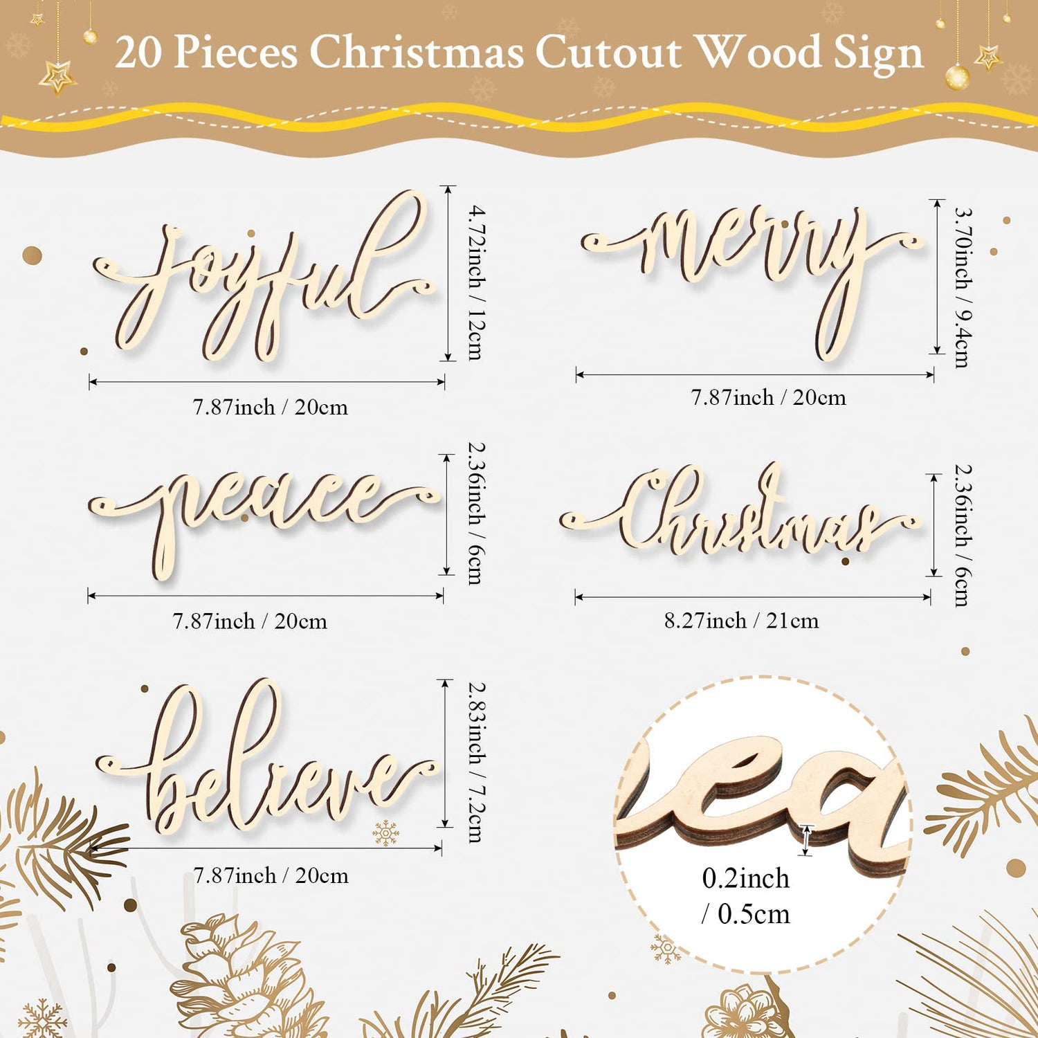20 Pcs Merry Christmas Sign Xmas Wooden Cutout Letter Plate Ornaments Rustic Merry Sign Christmas Wooden Sign Table Decors Joyful Peace Believe Cutout Plates Ornament for Home Christmas(Burlywood)